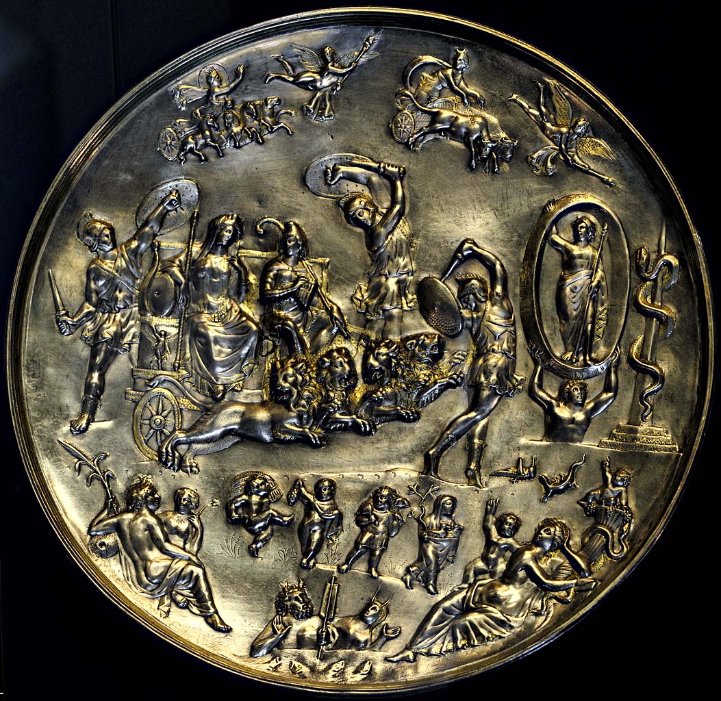 Fra tanti reperti alcuni capolavori, come un piatto d’argento (la “Patera di Parabiago”) con un insieme di raffigurazioni mitologiche (con un click vedrete il carro di Cibele trainato da leoni, Atlante che sostiene il Tempo, le Quattro Stagioni, una lucertolina impertinente e tanto altro ancora); era utilizzato durante le cerimonie sacre pagane.