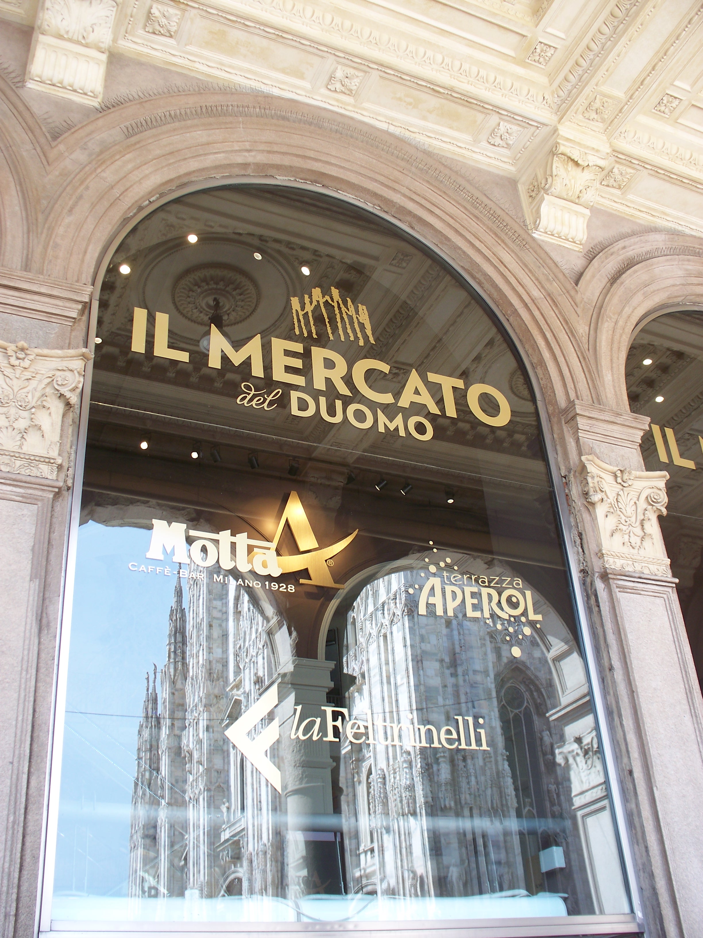Alcuni tavoli guardano verso la Galleria, appena restaurata: una vista molto bella per un “Mercato” molto meneghino…