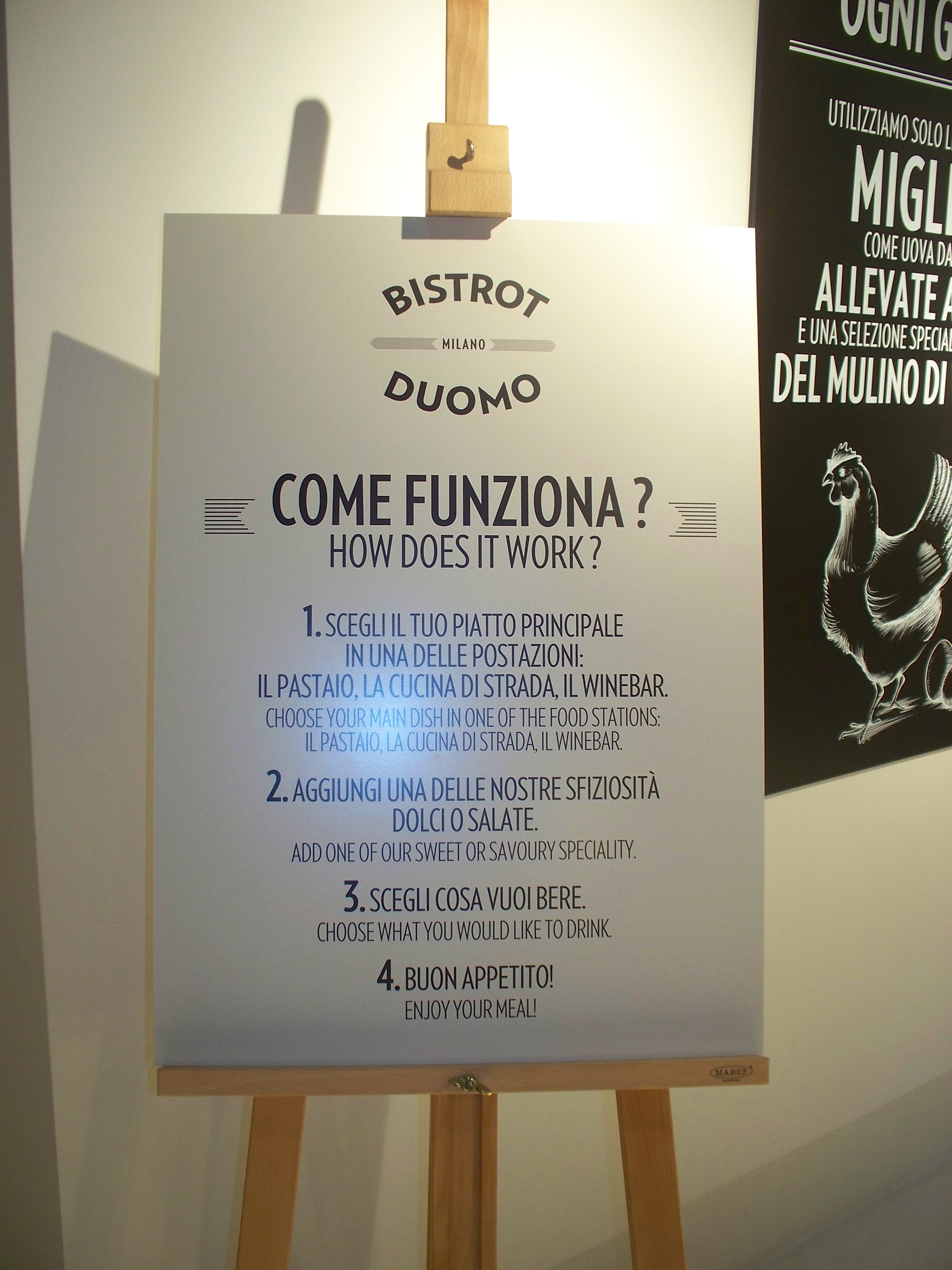 In questo grande spazio centralissimo, a più piani, situato in piazza del Duomo, accanto alla Galleria, si succedono angoli di ristorazione dedicati alle diverse esigenze di una clientela quanto mai varia, tipica di una città in movimento.