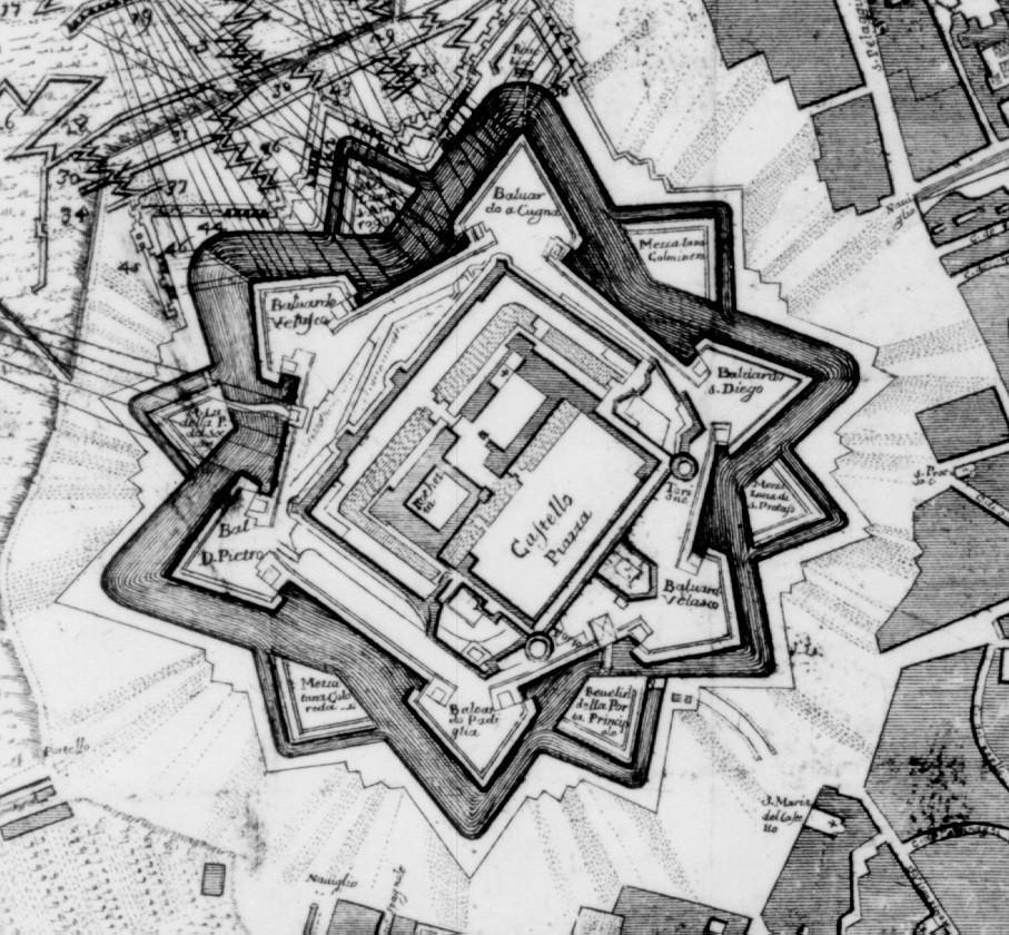 All’esterno 3 chilometri di bastioni avevano circondato la Ghirlanda, antica fascia protettiva del Castello.