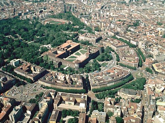 Il Castello, che si apriva alla città, ora è rivolto contro di essa, per controllarla e per difendersi, anzichè difendere Milano.