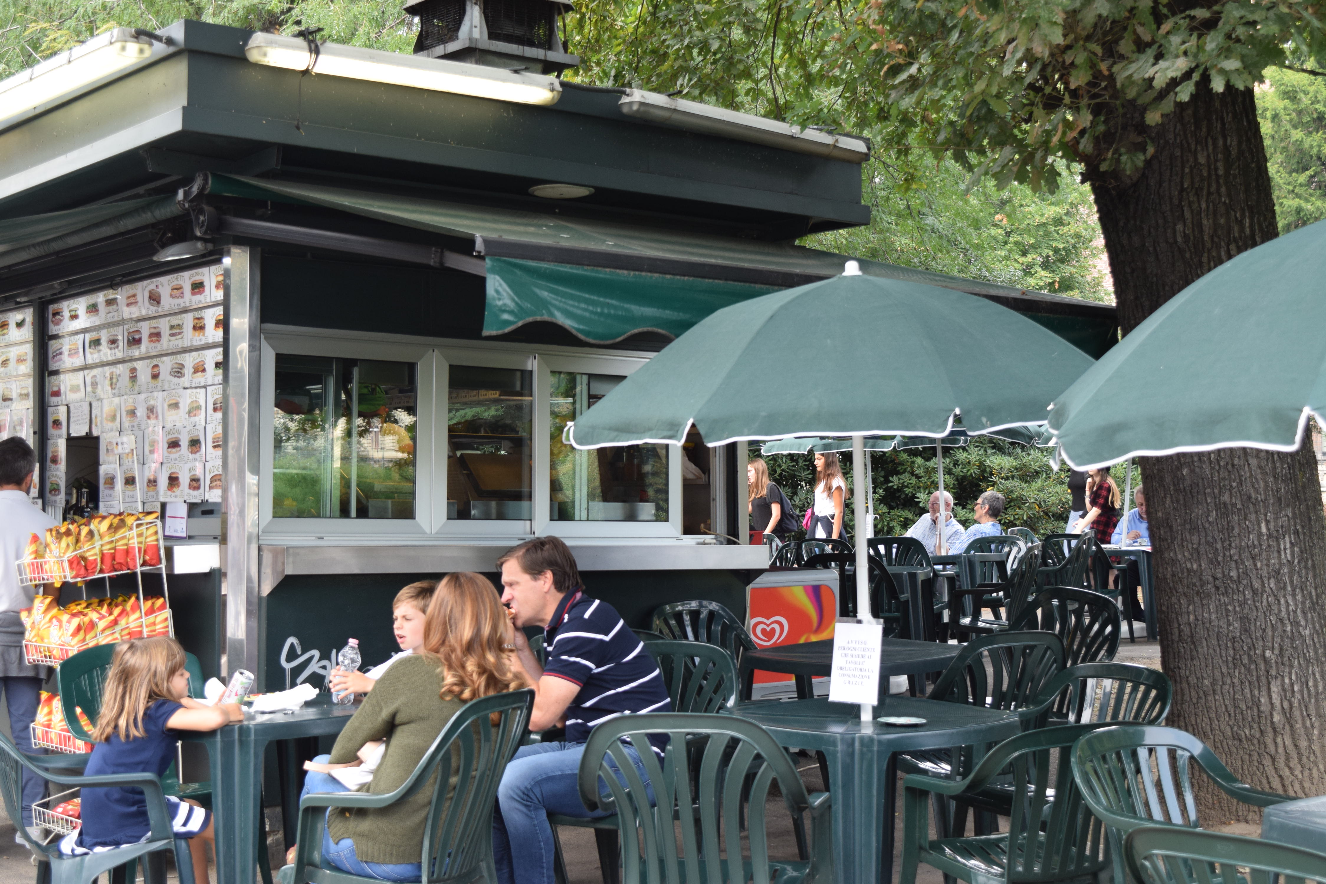 Il chiosco sulla sinistra, guardando la Torre del Filarete, è nato quindici anni fa e prepara panini “politici”; infatti ogni specialità è dedicata a uomini politici attuali o del passato.