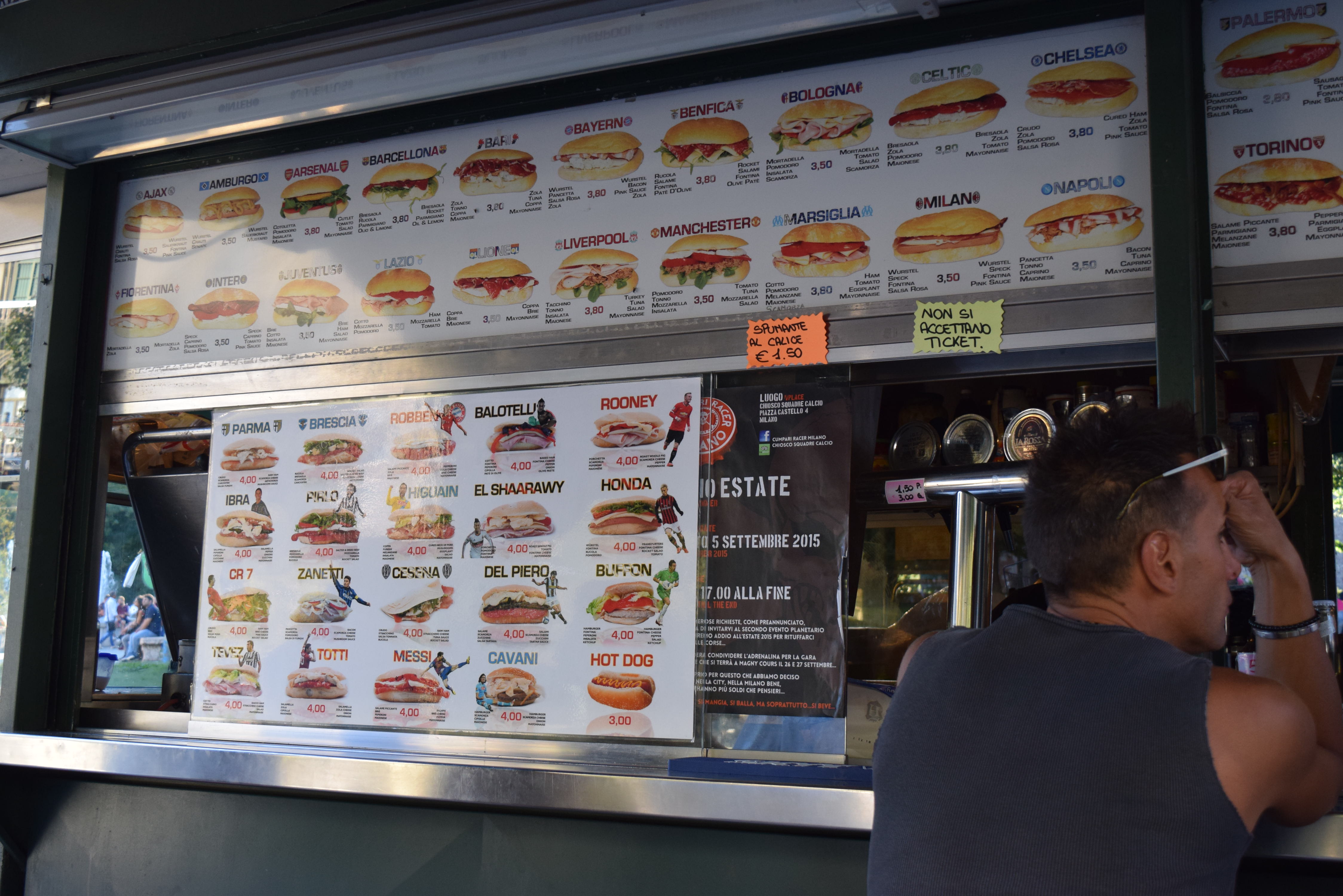 L’altro chiosco, sulla destra sempre guardando la Torre, è invece ispirato al gioco del calcio; è considerato uno dei migliori street food di Milano, tanto che è addirittura ai primi posti della classifica dei ristoranti milanesi recensiti su TripAdvisor.