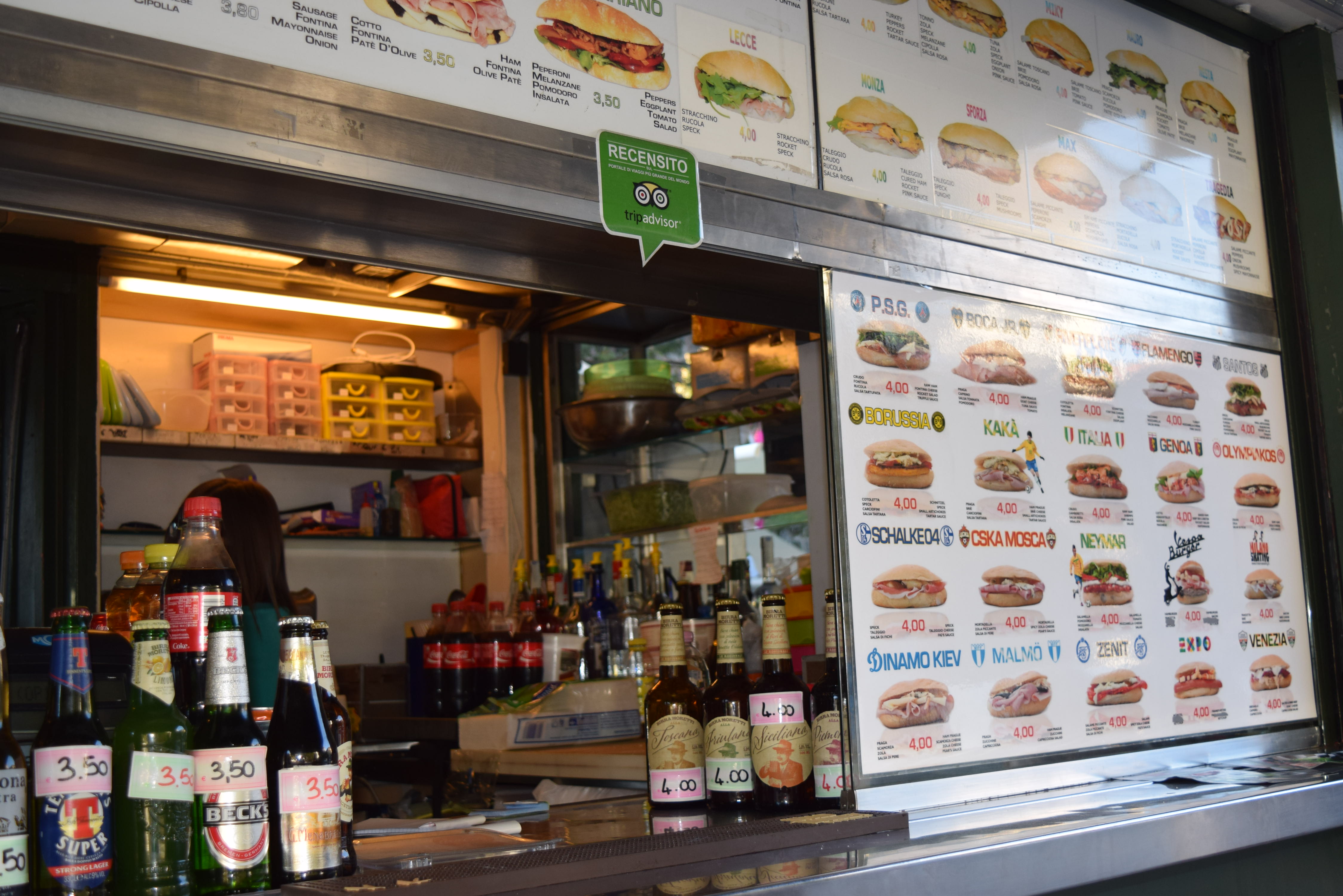 Gli ingredienti sono semplici e di qualità, lontano dagli esperimenti gastronomici di tanti locali alla moda. I panini sono veramente grandi e possono fare da pranzo o da cena, anche perché entrambi questi chioschi sono aperti fino a tardi per i nottambuli.