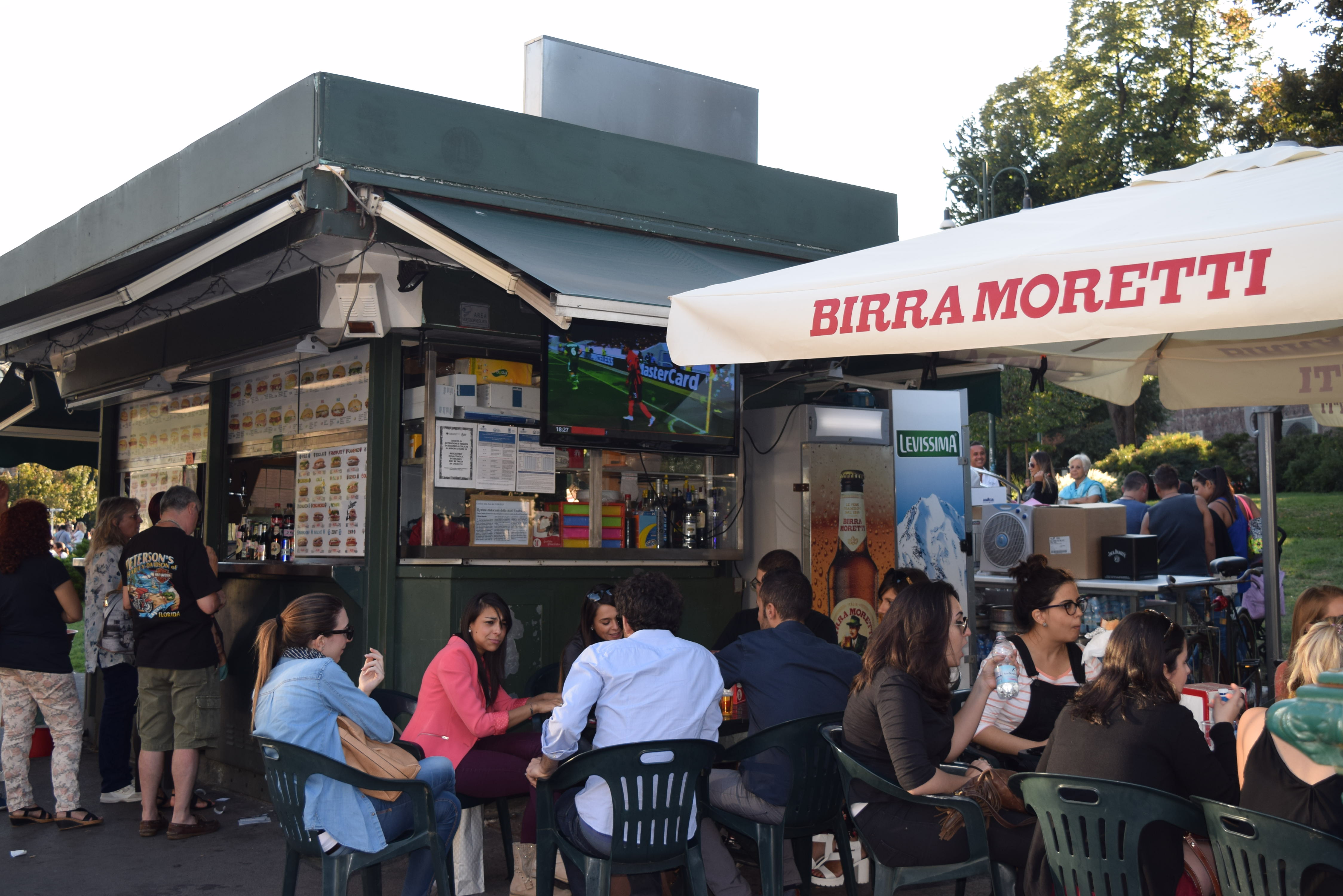 Vino, birra, bevande varie e gelati accompagnano gli enormi panini, che si possono gustare anche seduti ai tavolini all’aperto guardando la partita sull’ampio schermo o discutendo di politica, all’ombra di piante secolari.