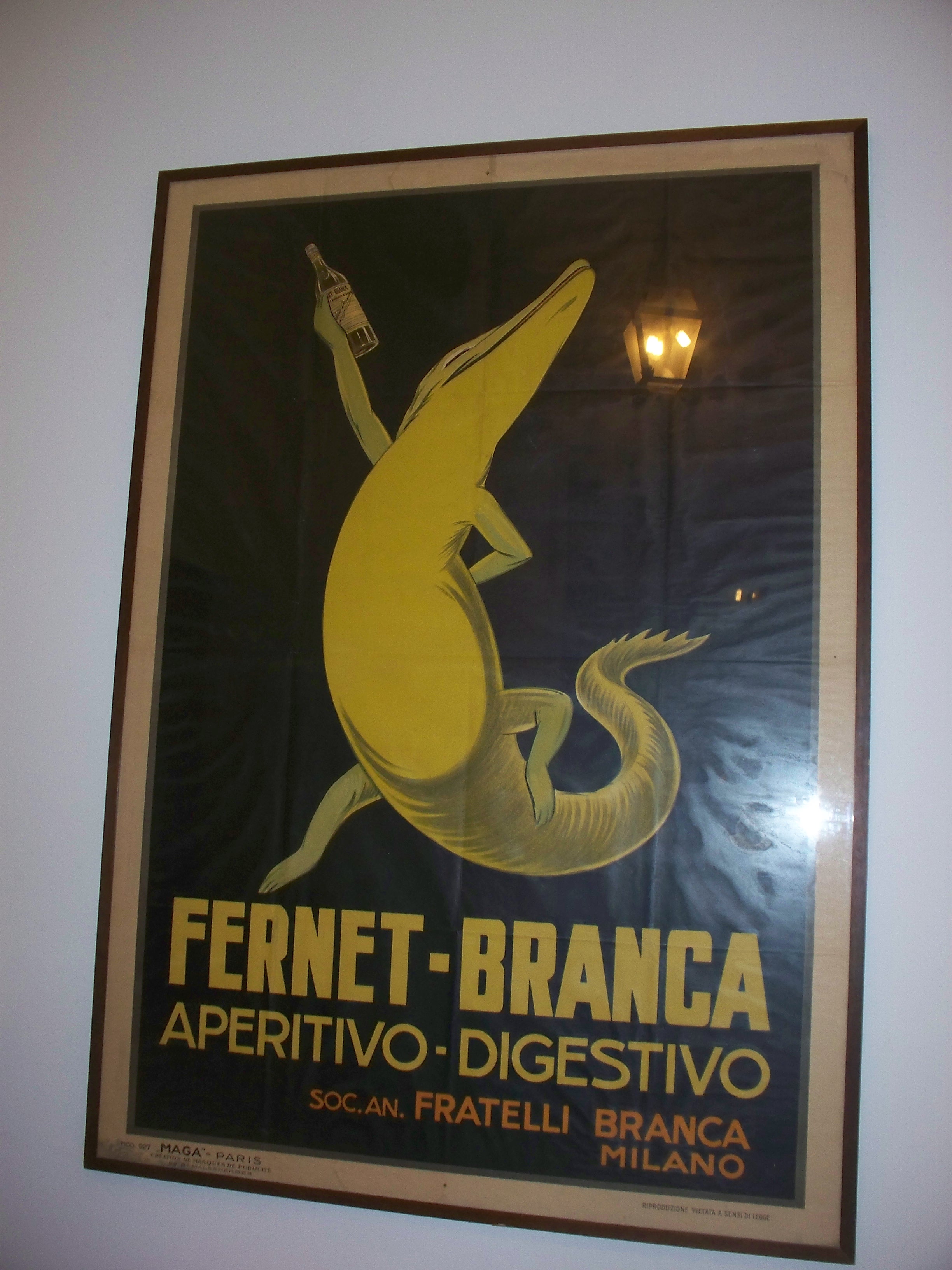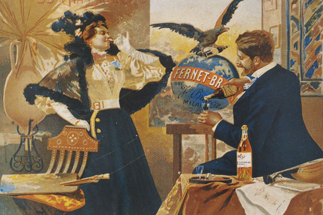 Il logo, usato ancora oggi, dell’aquila che tiene tra gli artigli una bottiglia di fernet sopra il globo terrestre, ad esempio, fu firmato dal grande Leopoldo Metlicovitz, autore anche di scenografie, locandine e manifesti.