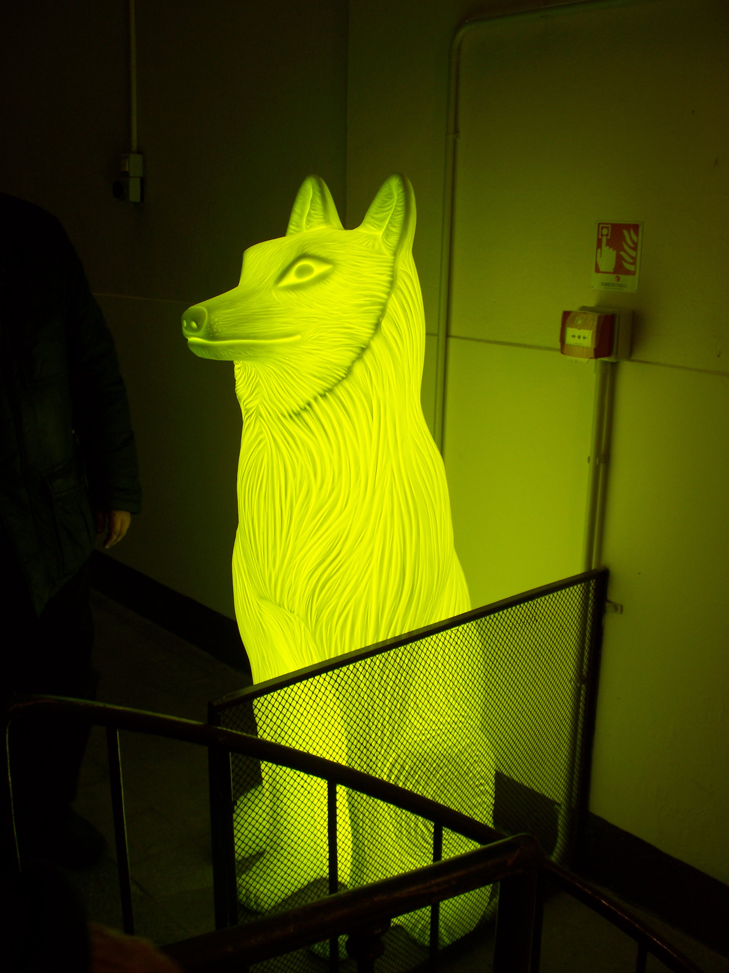 I protagonisti di questo museo d’impresa non sono solo reperti storici e sistemi produttivi. Lupi, lumache, rane di plastica colorata sono disseminati tra i vari ambienti, esempi di cracking art esposti in questo periodo nella collezione.