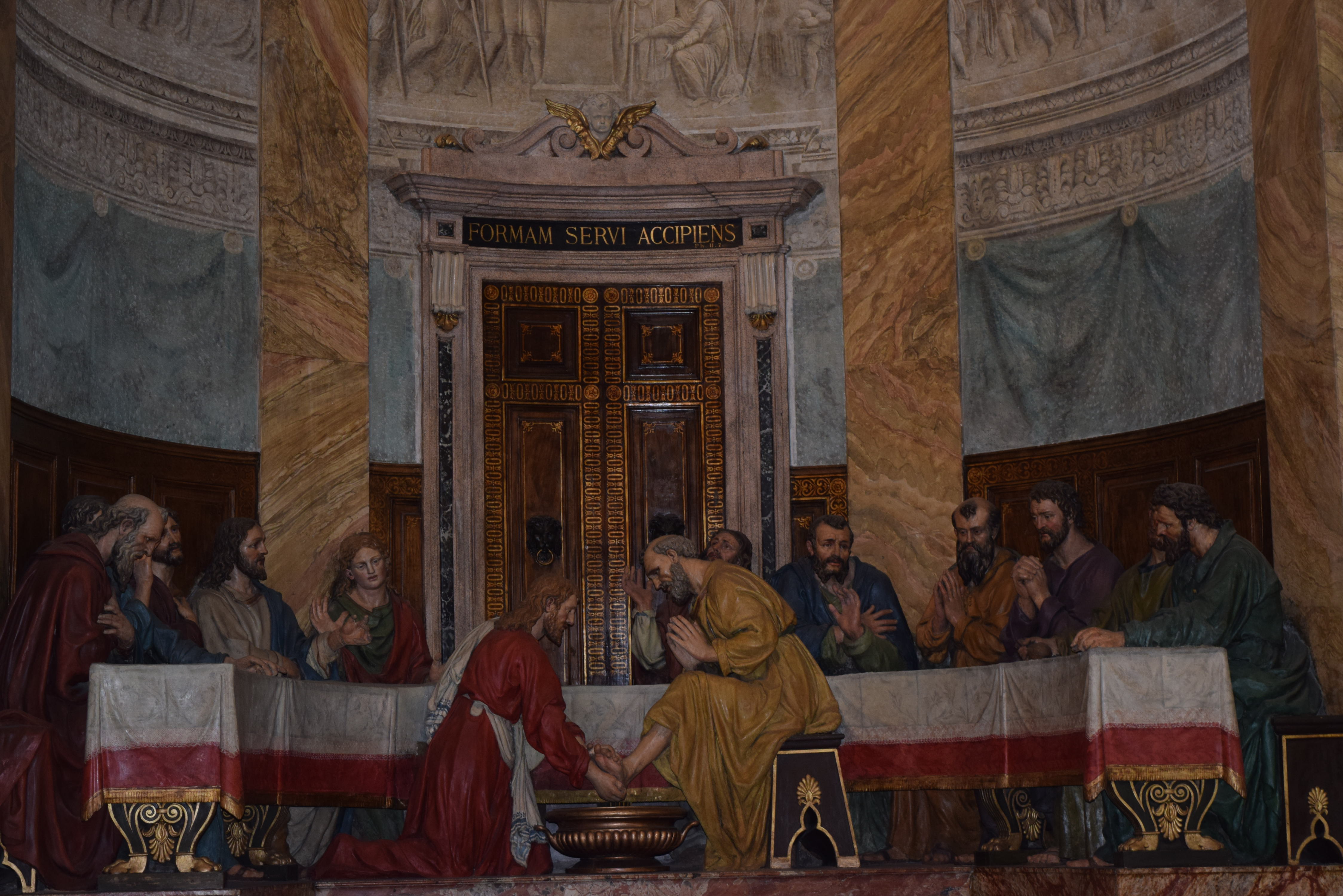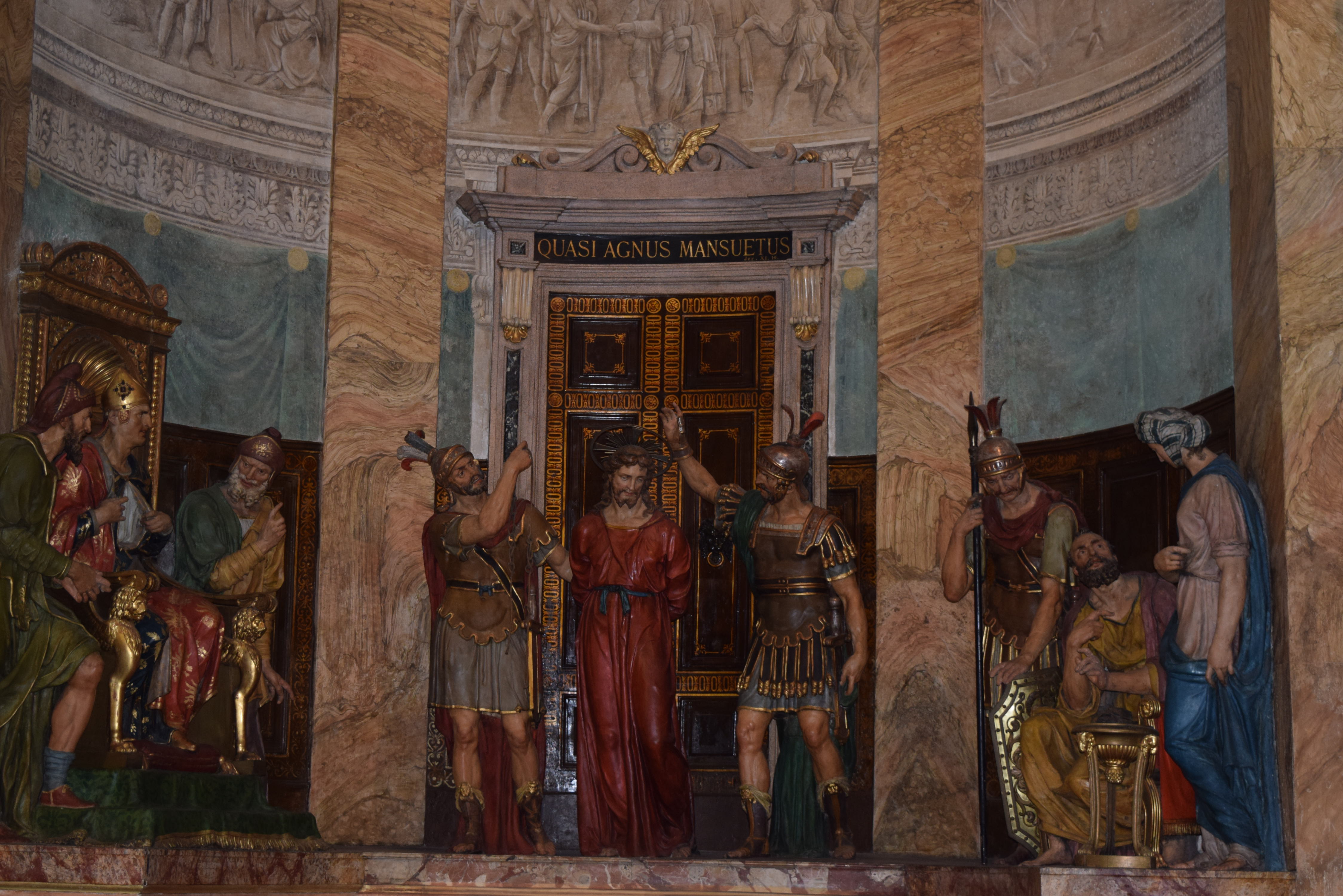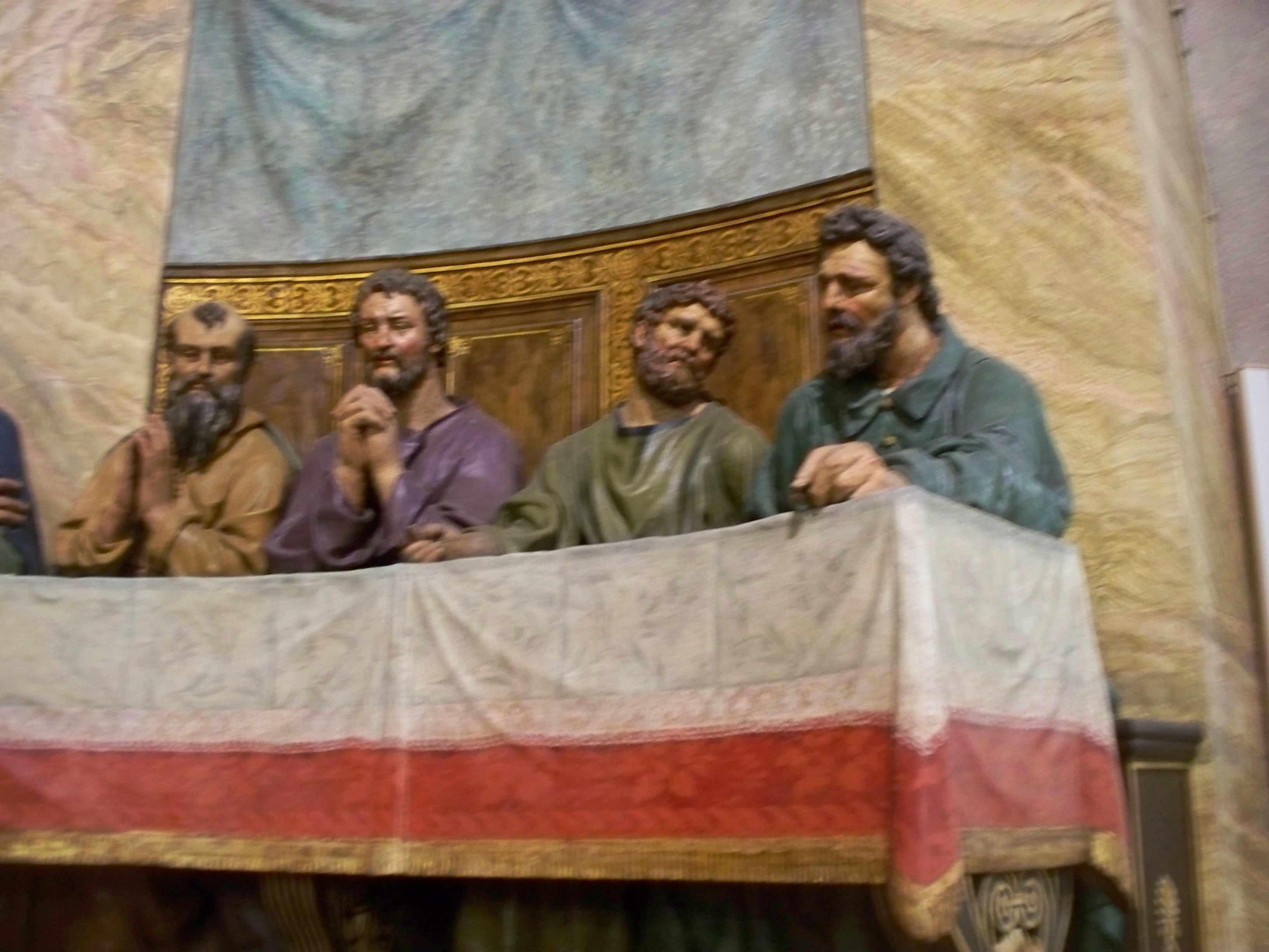 Nelle due cappelle ai lati dell’abside, statue secentesche di terracotta policroma a dimensioni naturali rappresentano alcuni momenti della Settimana Santa. Sono opere di suggestivo realismo ed espressività. A sinistra l’Ultima Cena con la Lavanda dei Piedi e Giuda col sacchetto dei 30 denari; a destra Gesù tra i soldati, Caifa che si straccia le vesti e Pietro che rinnega Cristo.