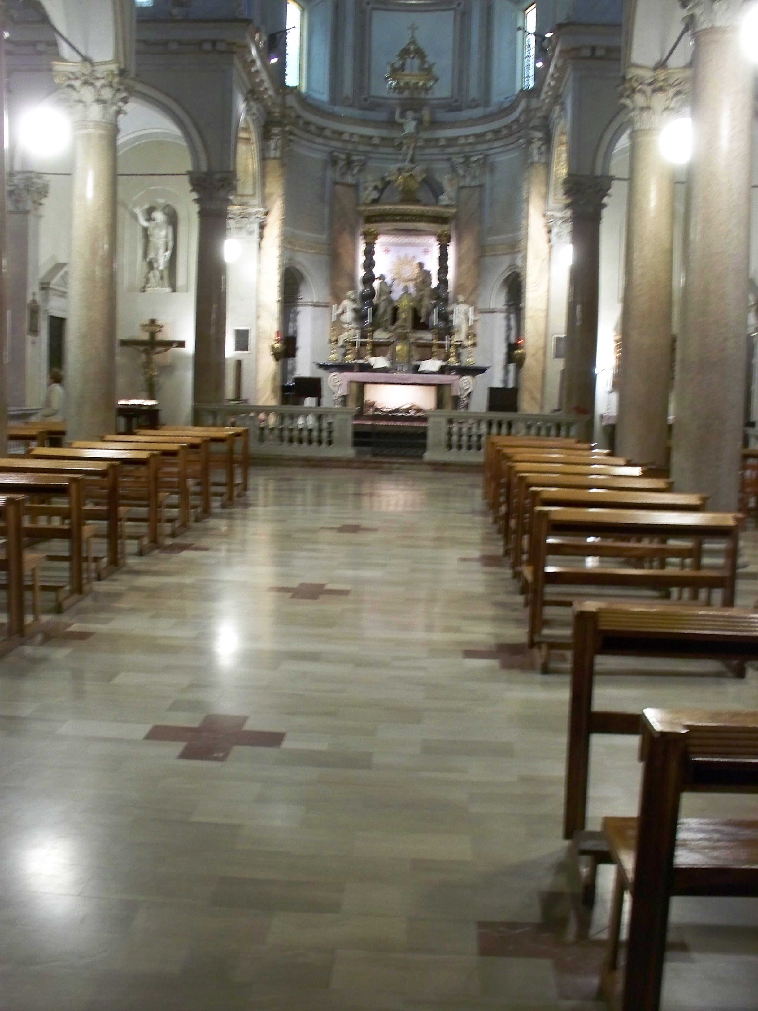 Entriamo. Una dolce luce soffusa filtra dalle vetrate.