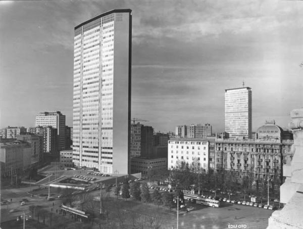 Interessante è l’edificio di sette piani a fianco del palazzo, la Torre Littoria, opera dell’architetto Portaluppi, risalente al 1937.