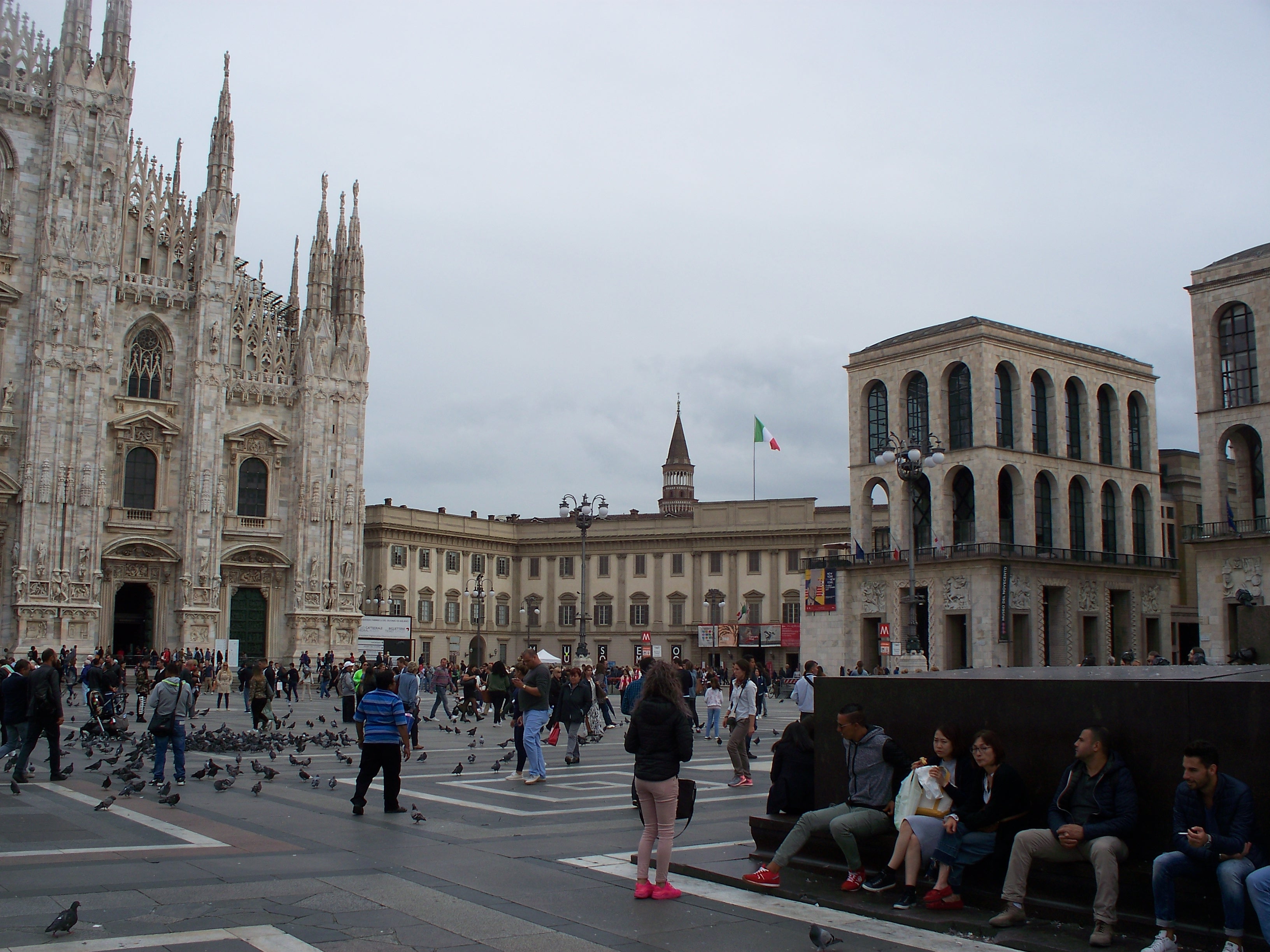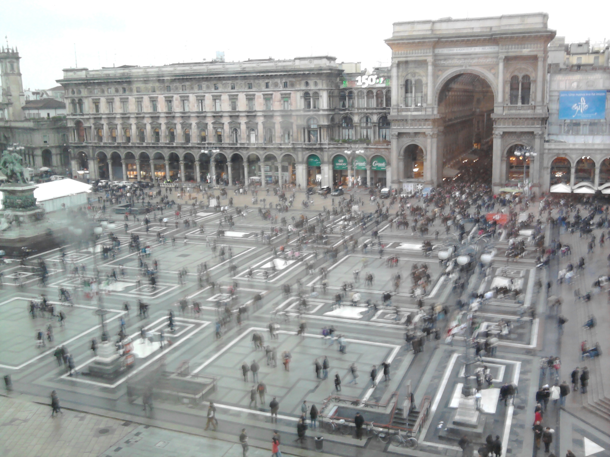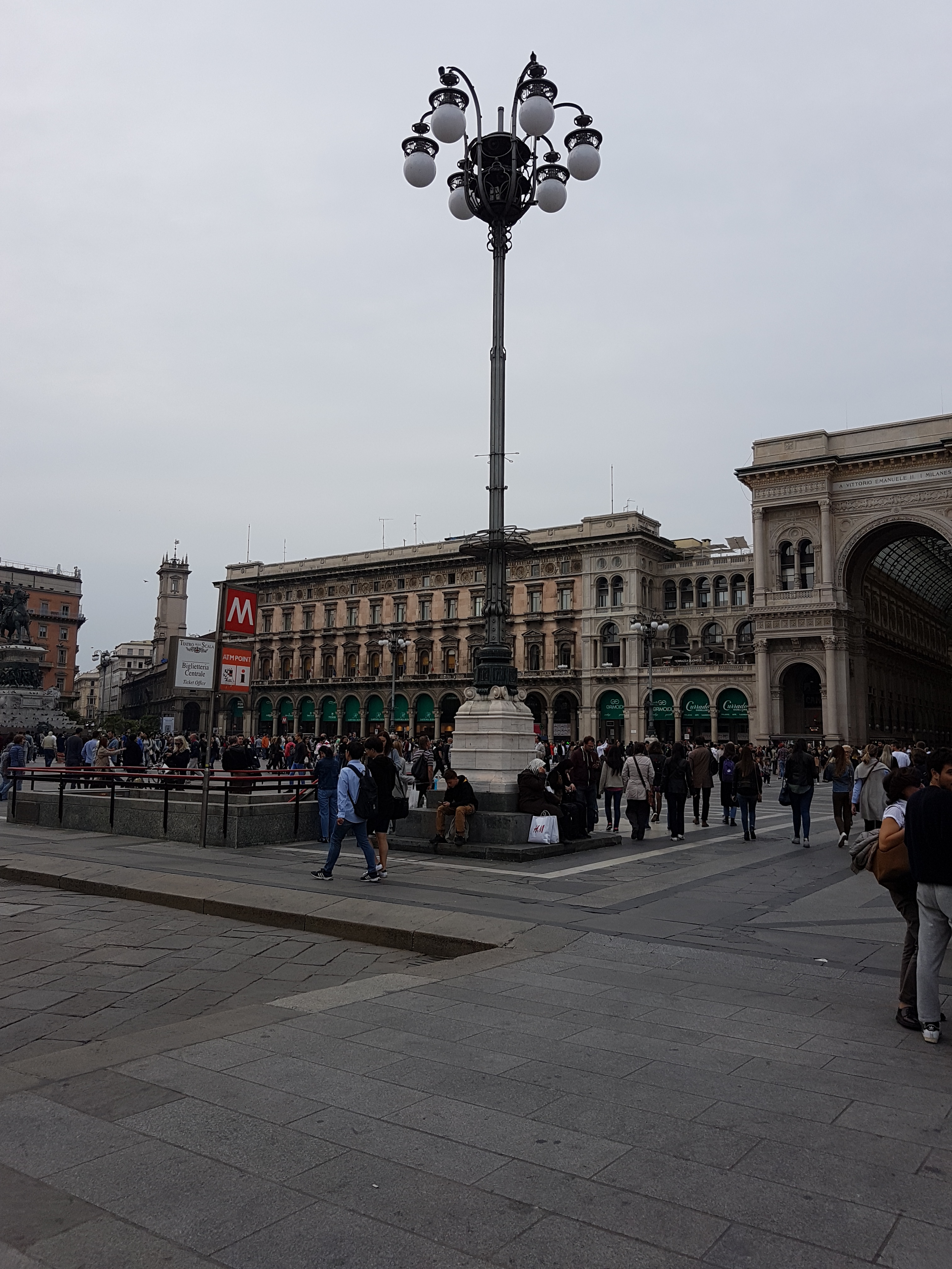Difficile è sedersi in piazza Duomo che sembra fatta per essere attraversata in fretta dai milanesi ed ammirata con calma dai turisti. Pseudopanchine sono (ahimè) i gradini del Duomo con un tappeto umano che volta le spalle alla cattedrale ed i basamenti dei lampioni e del monumento a Vittorio Emanuele.