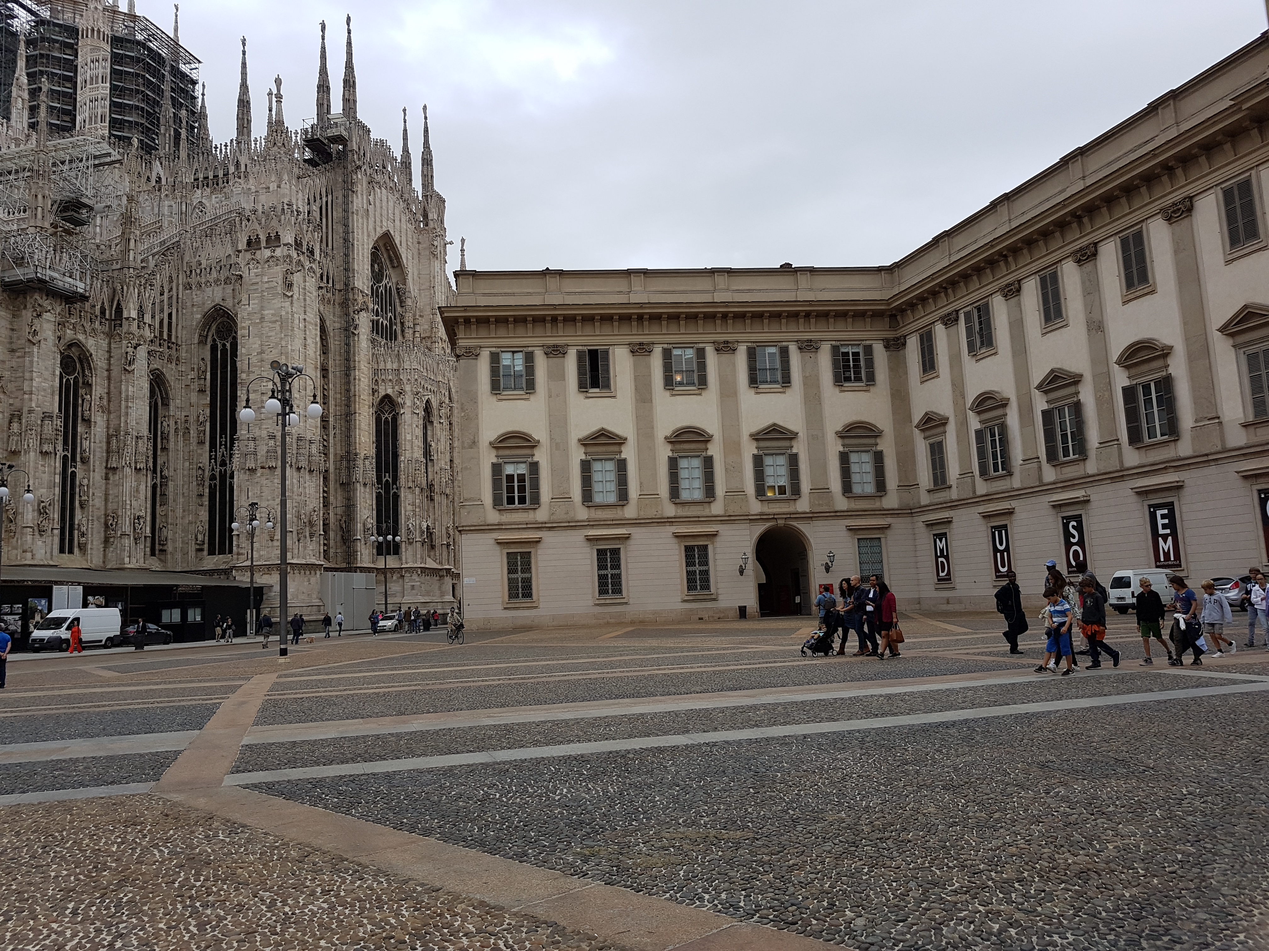 Intorno alla cattedrale sono stati abbattuti edifici e persino isolati (dall’antica basilica di Santa Tecla al portico borghese dei Figini e al quartiere popolare del Rebecchino) e costruiti altri (Palazzo Reale, la Galleria, i palazzi gemelli dell’Arengario) per fare da cornice e abbracciare il Duomo, da seicento anni star indiscussa della piazza.