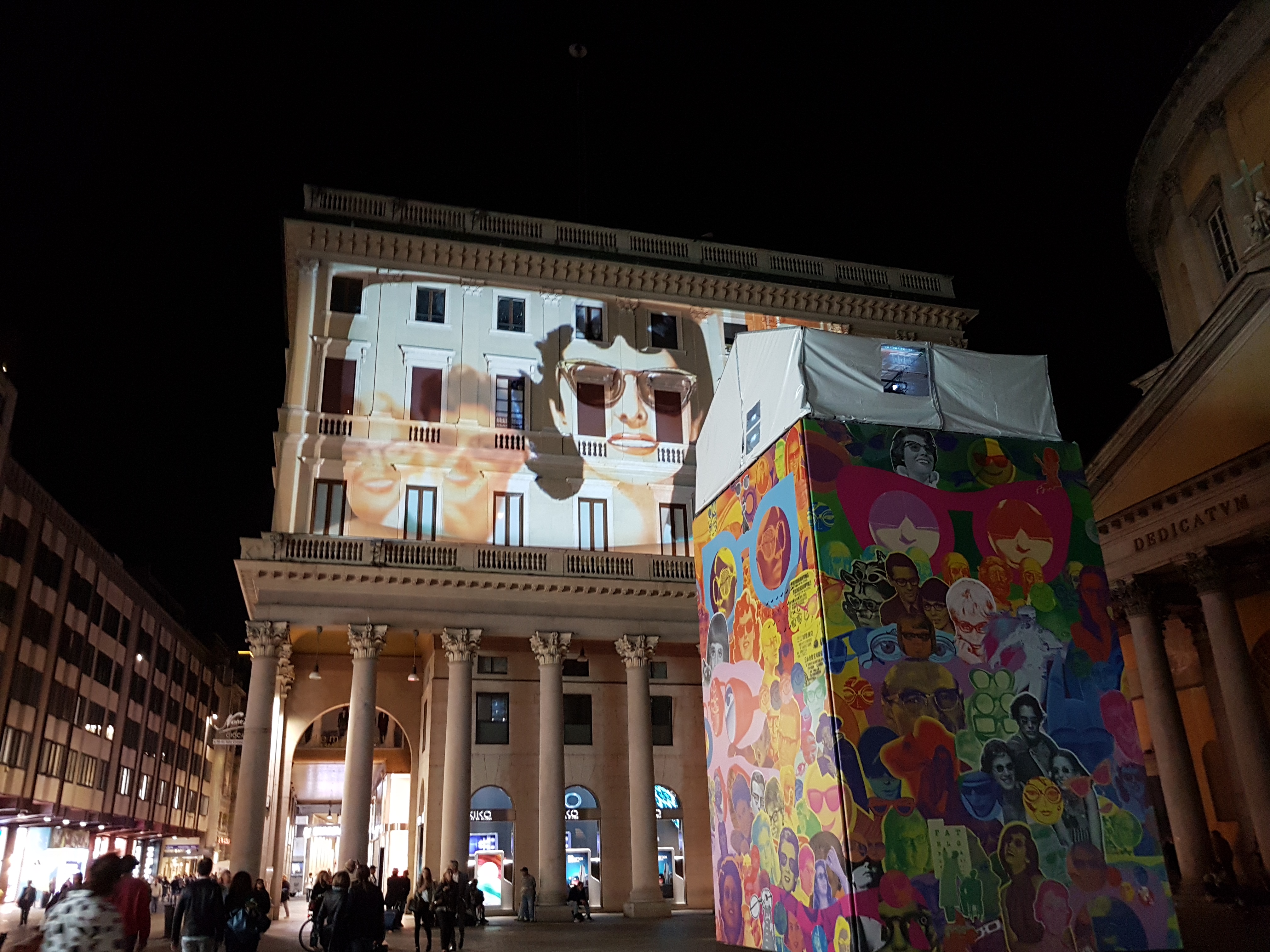 Di fronte al Duomo, sulla facciata di Palazzo Carminati, ora non si “accendono parole”, come scrisse Umberto Saba. Le storiche luci pubblicitarie furono spente alla fine degli anni Novanta per il “decoro” della piazza. Oggi davanti a questo palazzo un parcheggio di taxi e di bus turistici sono schermati dalle palme di Starbuck.