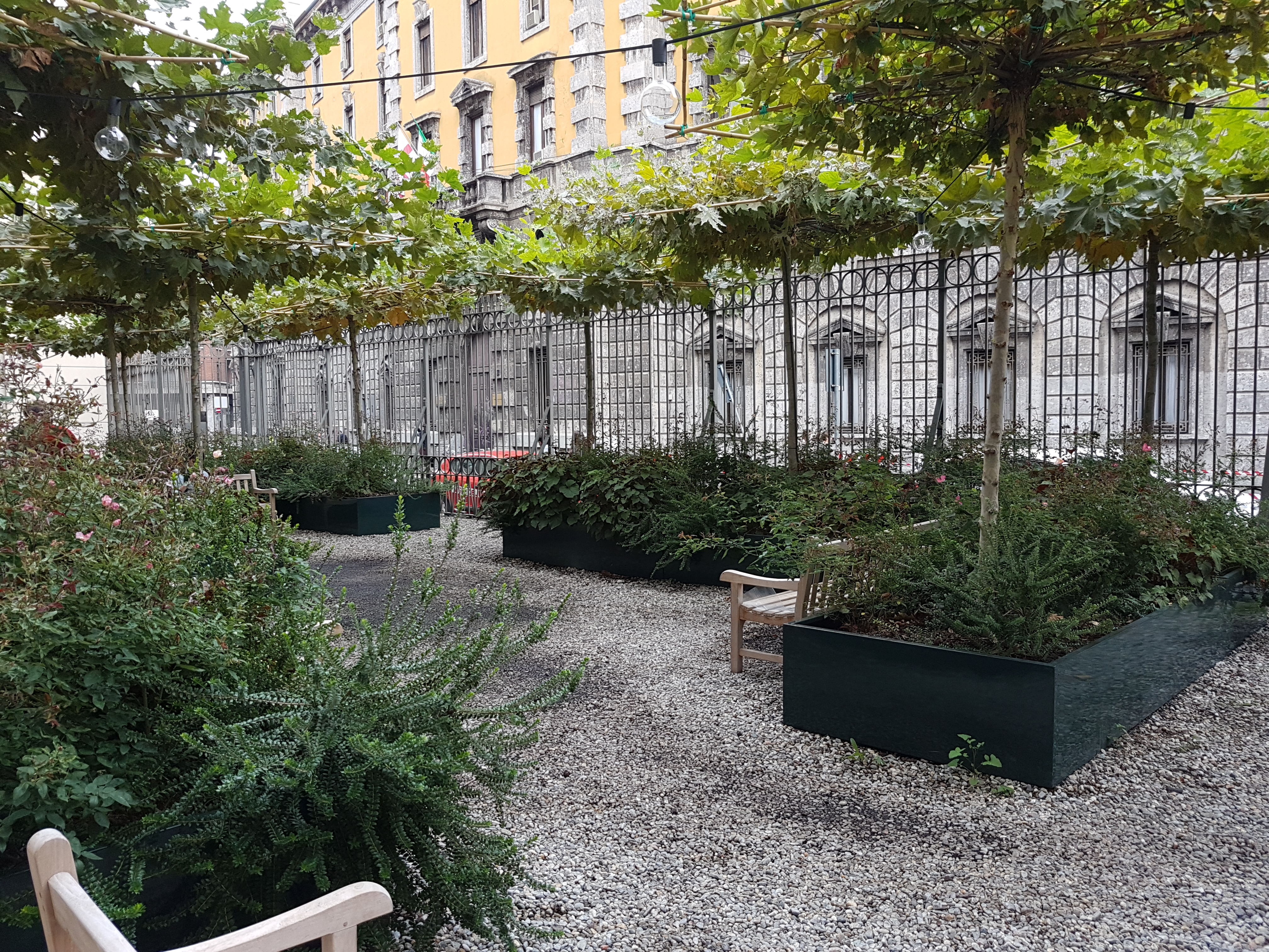 Altra sorpresa è il piccolo, inaspettato giardino dove potersi riposare un momento, situato alle spalle del Palazzo lungo via Pecorari.