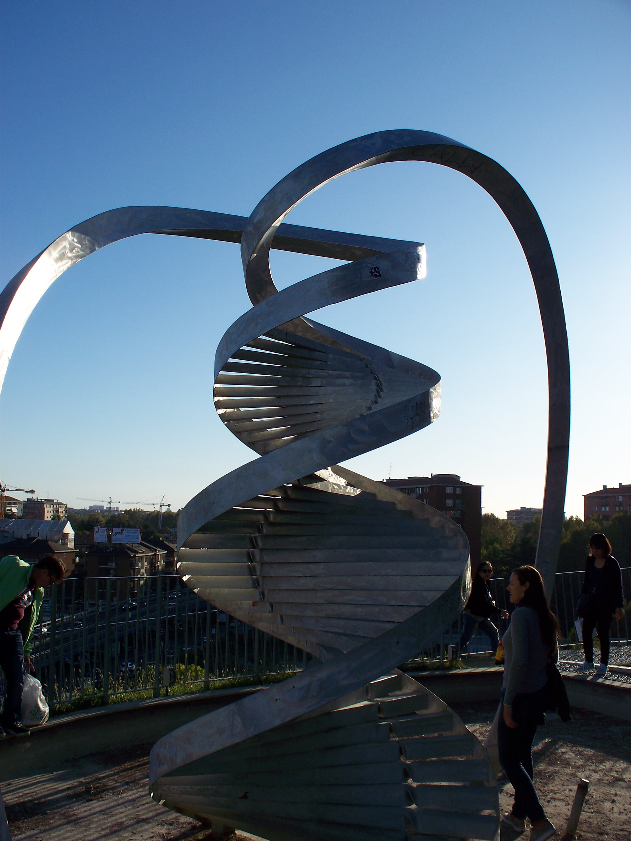 Al centro di questa terrazza troviamo una fontana, ora asciutta, con una scultura in acciaio che rappresenta la doppia elica del DNA, omaggio alla vita che ci ha fatto arrivare fin qui.