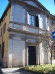 Sul fianco sinistro del bel palazzo, dalla facciata insolitamente concava, si trova una chiesetta sconsacrata, ricostruita da Leopold Pollack. a cui si deve la vicina Villa Reale.