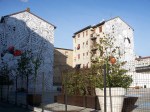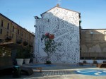 Ci sembra un angolo molto bello dove i murales, che richiamano il tessuto urbano, sono la quinta per definire uno spazio in mezzo alla città, piccolo ma vivibile, da amare.