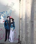 Terminiamo questo nostro piccolo viaggio fra alcuni murales della street art milanese con un addio: in via Carducci una coppietta stava abbracciata su un muro. Ora Leonardo e Monna Lisa sono stati imbrattati di vernice. Vogliamo ricordarli all’ “incontrario”, come se fossero riusciti ad uscire dalla nube di parole che li avvolgeva, per continuare a vivere la loro storia!