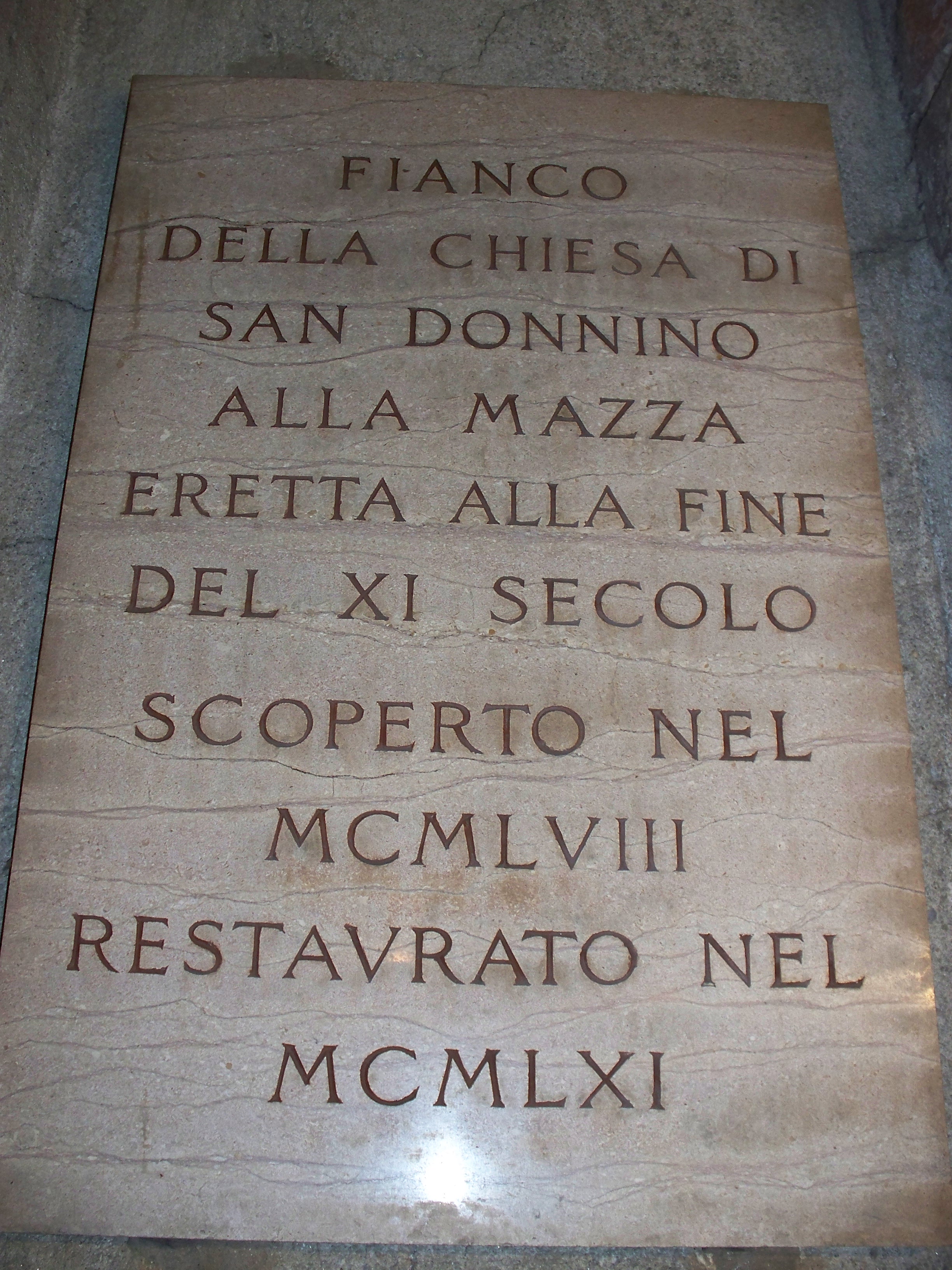 Un antico muro di mattoni, venuto dal passato, si affaccia su questo vicolo. Sono i resti di San Donnino alla Mazza (o della Mazza), una chiesa medievale, restaurata più volte nel tempo.