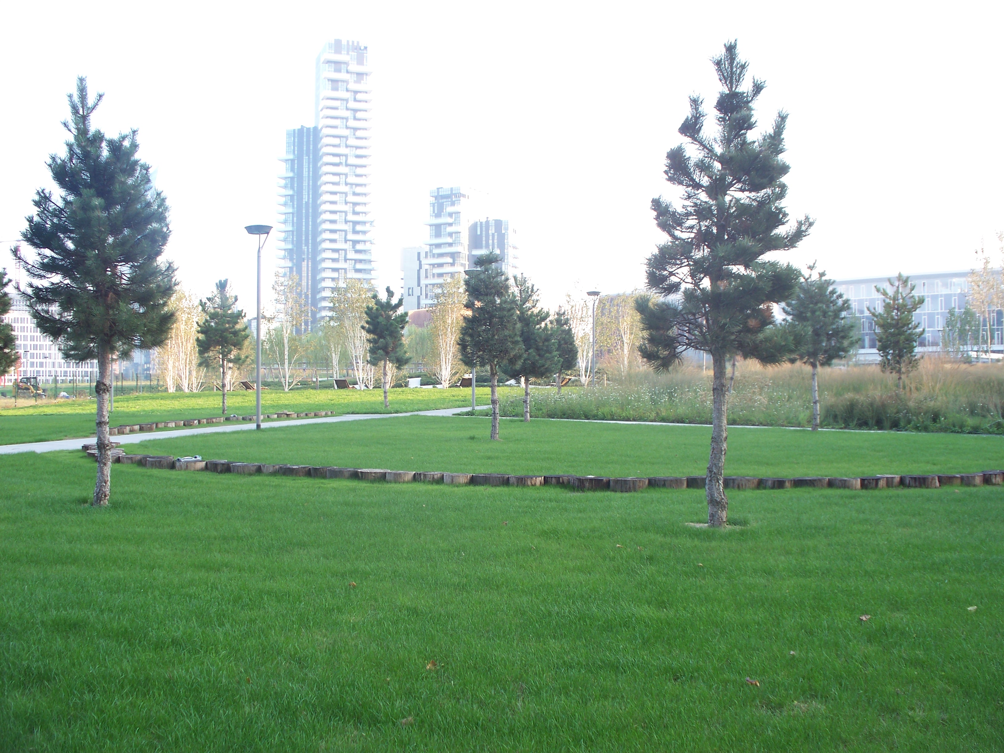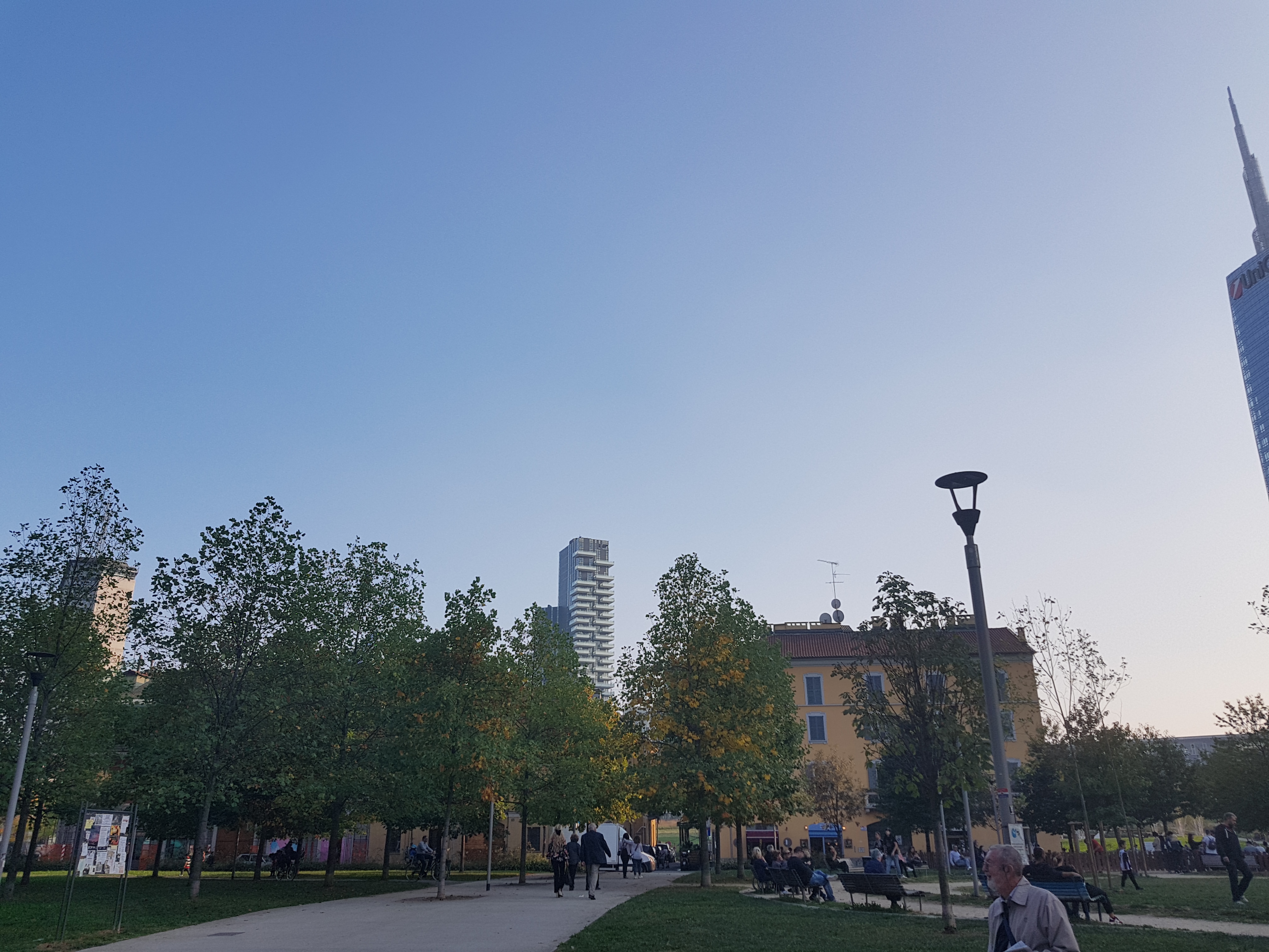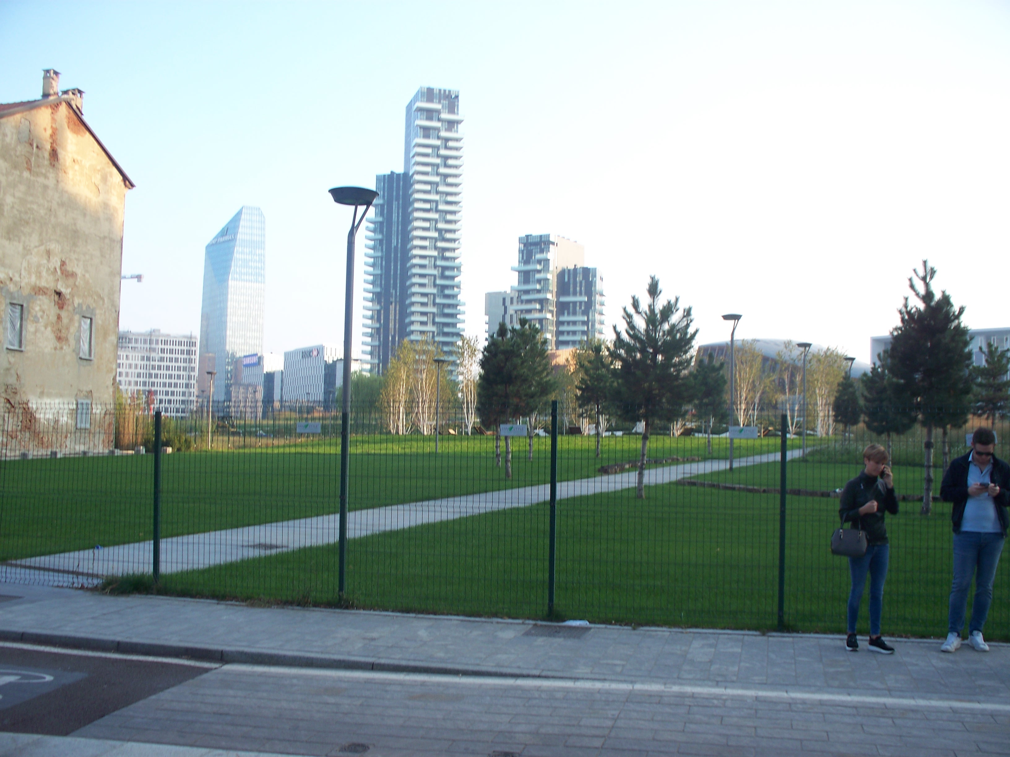 Gli alti grattacieli di archistar famosi non rendono buie le strade, ma sono collocati in ampi spazi a verde. In questa zona sta sorgendo la Biblioteca degli Alberi, ci sono passeggiate pedonali, piccoli orti, campi di bocce e giochi per bambini.