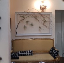 Nei nostri quattropassi per il Fuorisalone, abbiamo colto quest’immagine in cui ci sono strane piante (a proposito anche le Tillandsie, piccoli “ragni” vegetali, possono fiorire!) in una vecchia cornice di chi sa quale dipinto, sopra un divanetto vintage che invita a momenti di pensoso relax.