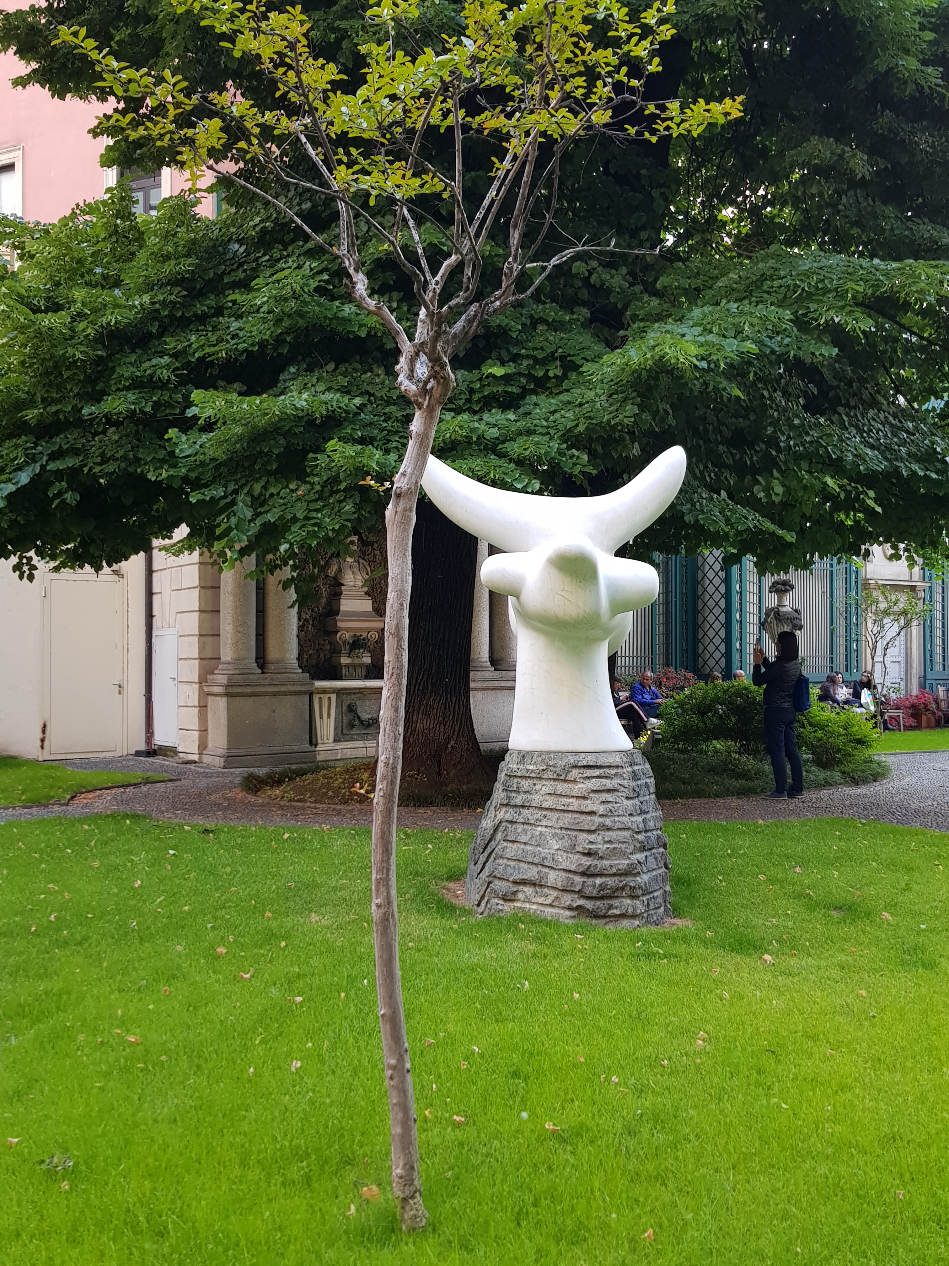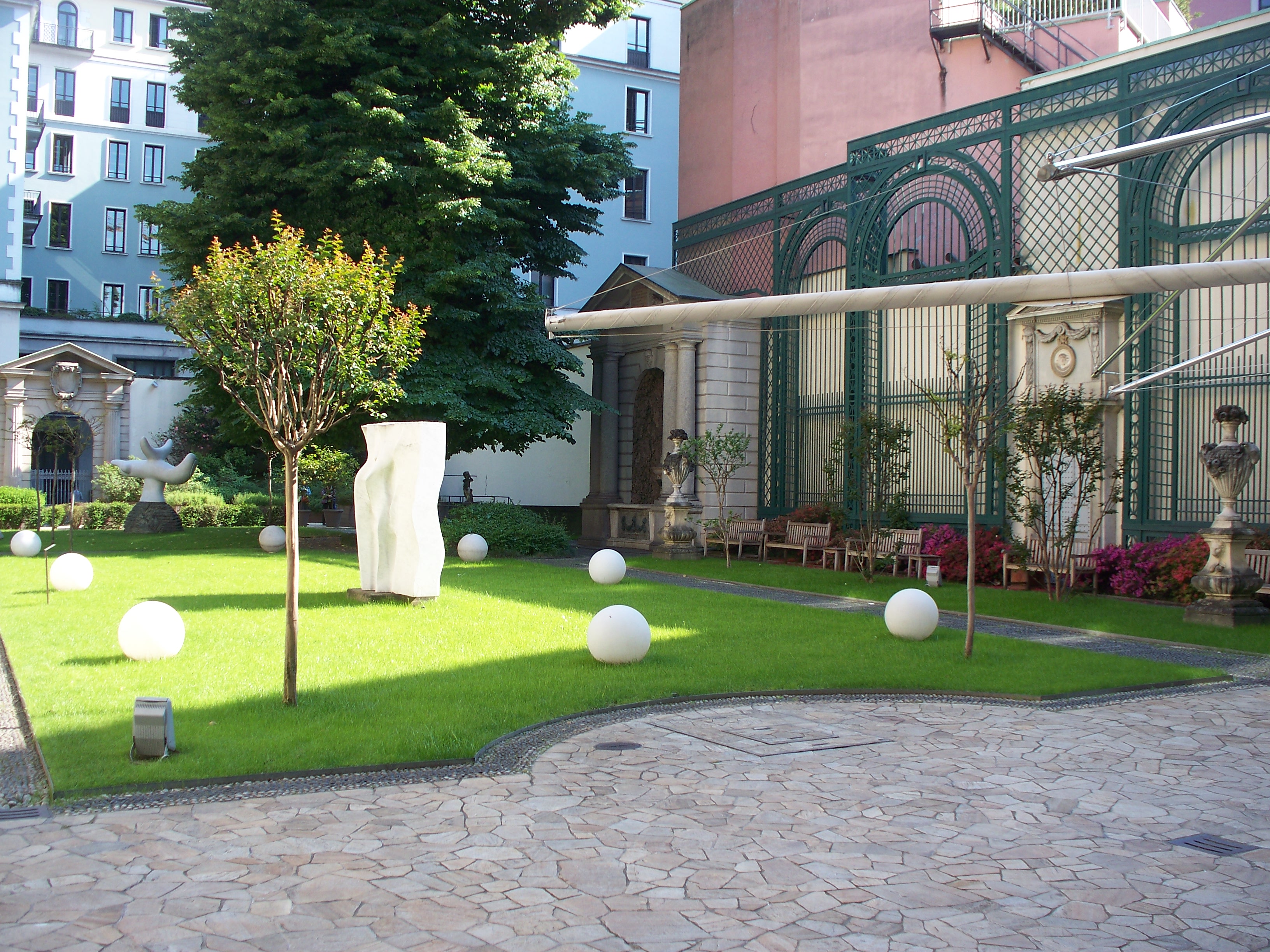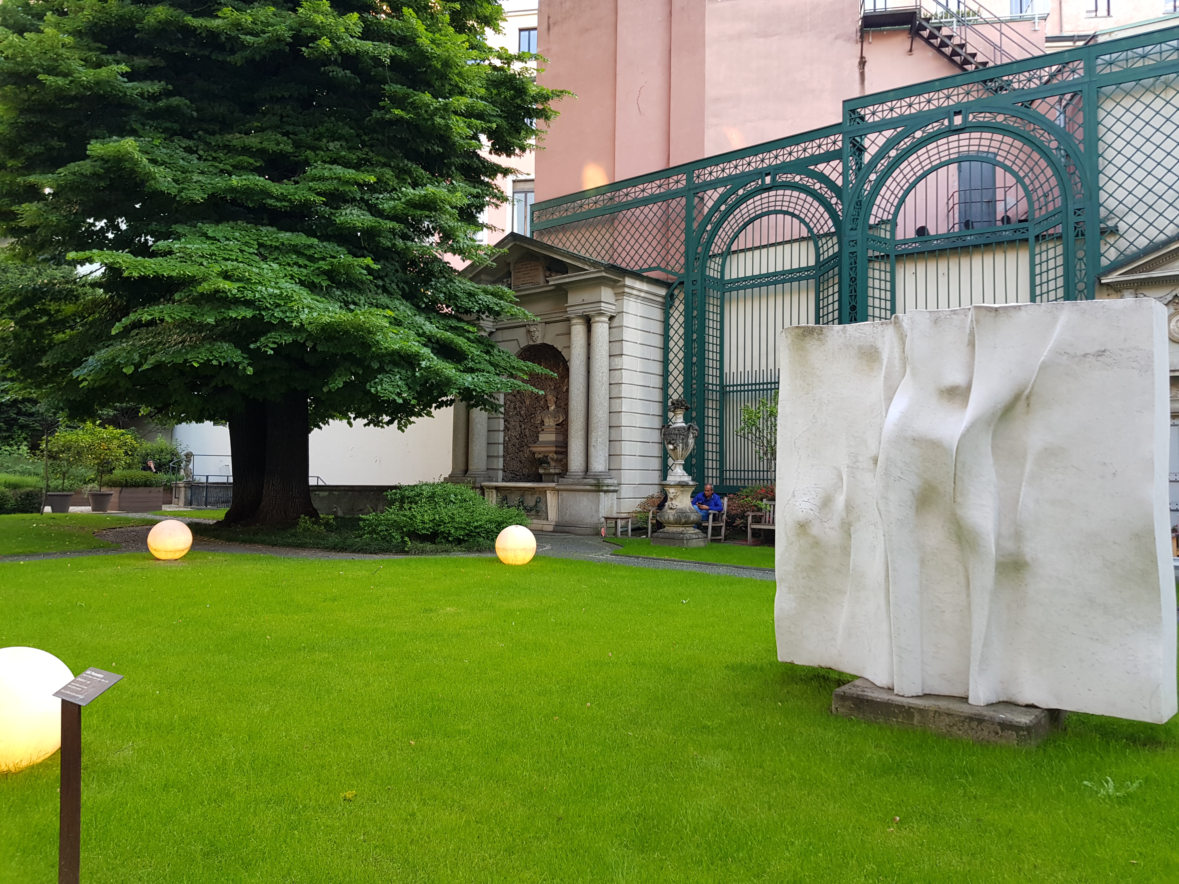 In questo giardino, che fa parte delle Gallerie d’Italia, alcune statue di autori contemporanei si lasciano guardare come in un museo all’aperto.
