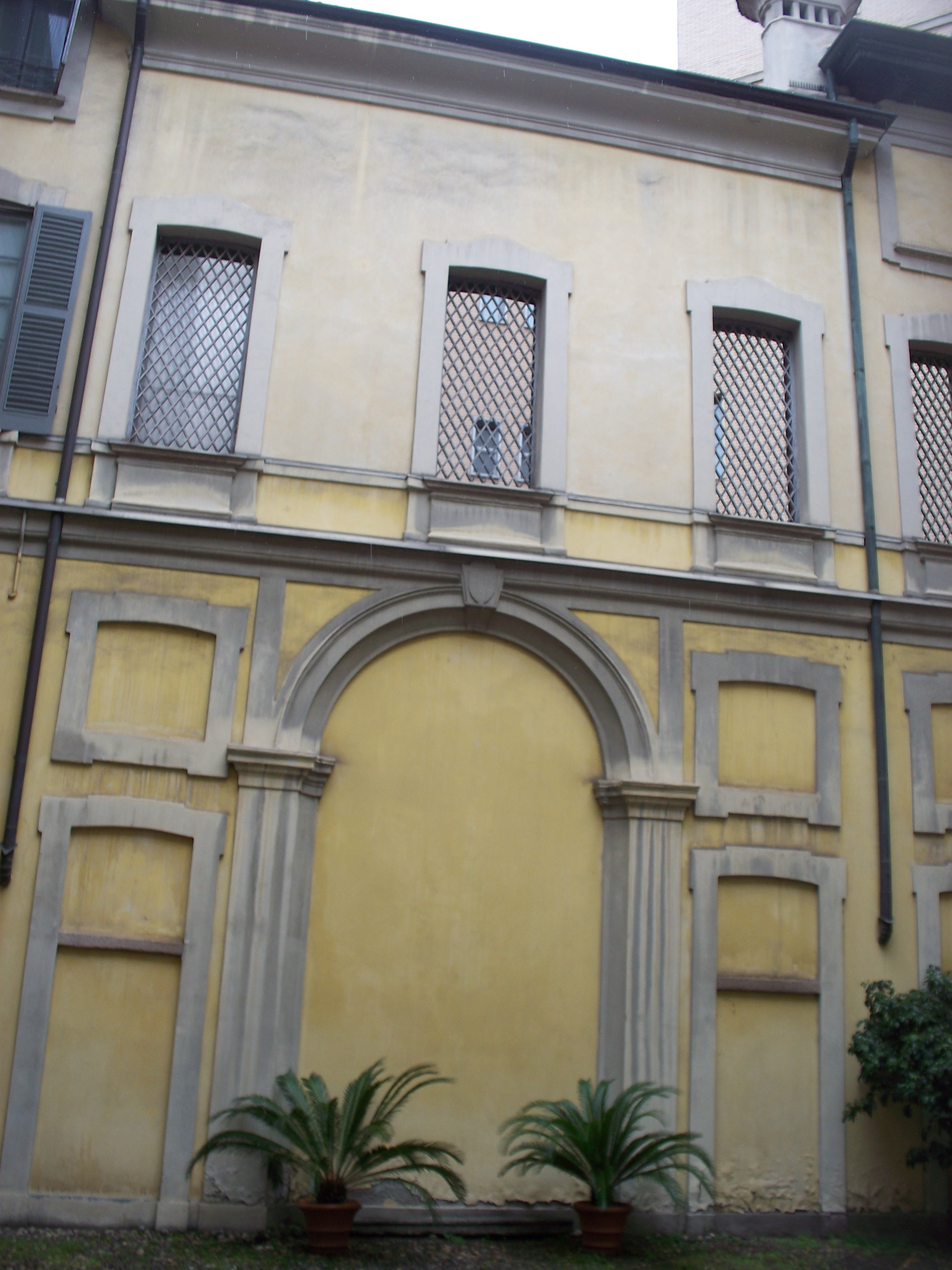 Nel secondo cortile un intero lato è affrescato con il ripetuto motto, “Humilitas”, dei padroni di casa, tra i quali gli Arcivescovi Carlo e Federico Borromeo.