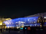 Il palazzo è una gigantesca scatola luminosa e il portico è un tripudio di luci, una cattedrale degli acquisti.