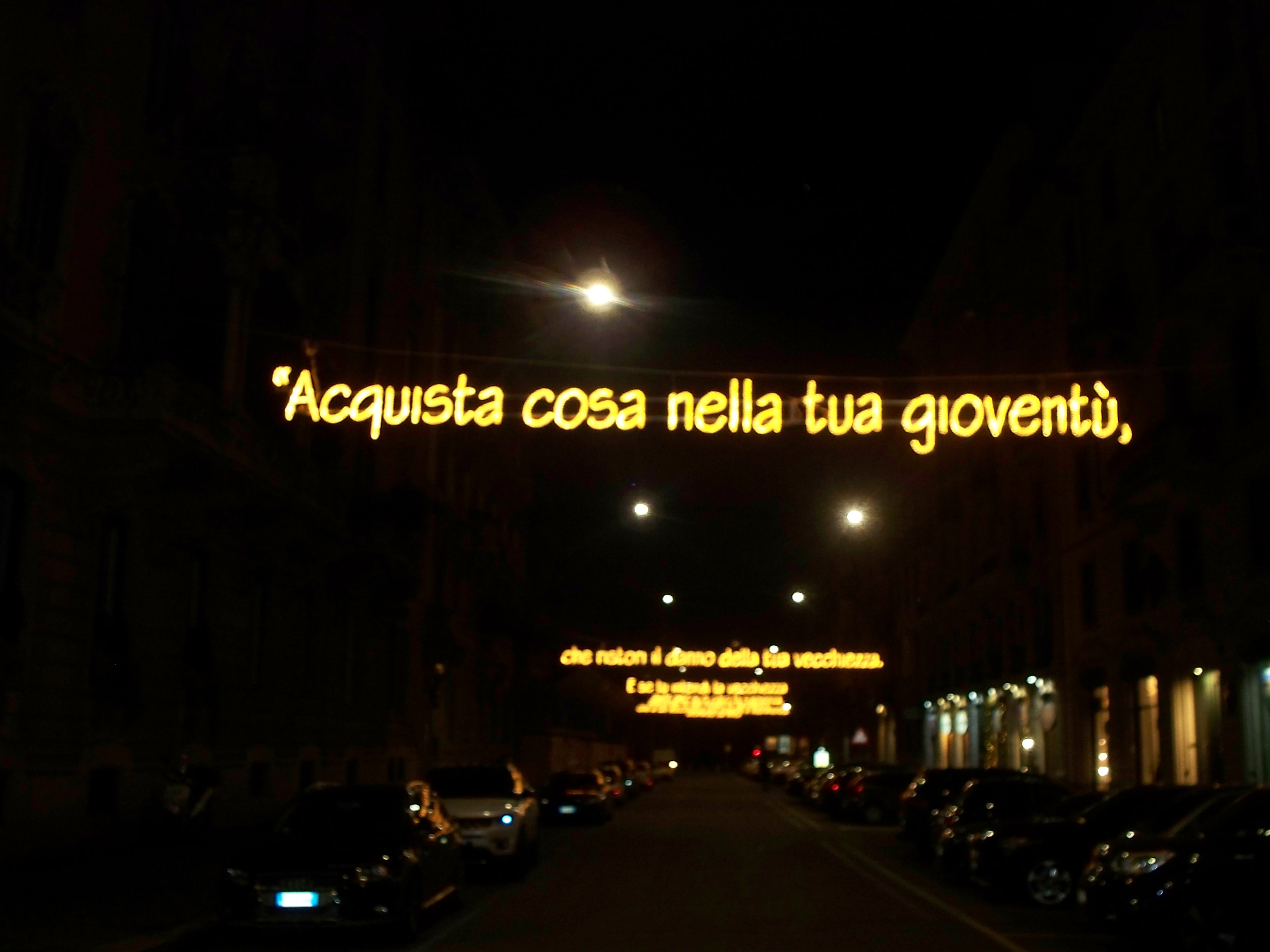 I finestrini ci lasciano vedere uno squarcio incredibile della nostra città. In poco spazio ci sono colonne pagane, una tra le più antiche basiliche cristiane, la statua replicante di Costantino (l’originale è a Roma), un portale e un balconcino rococò… per non parlare dei graffiti accanto alla chiesa.
