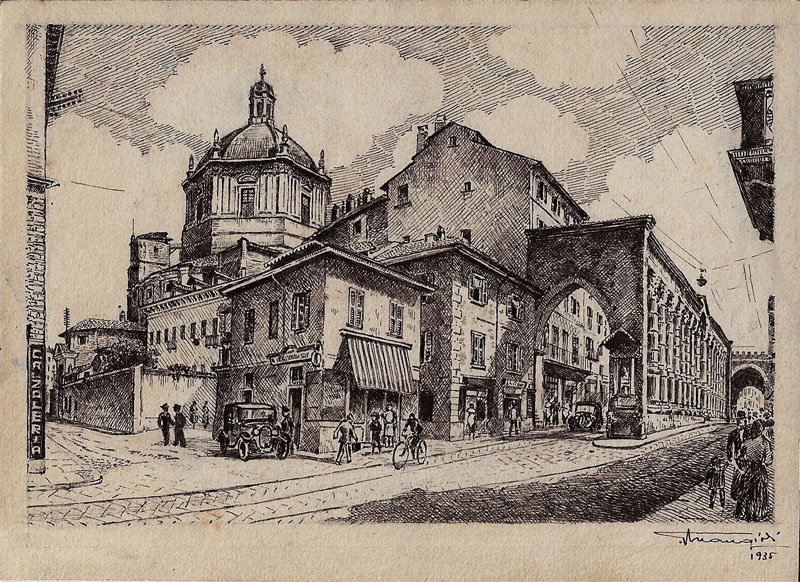 All’estremità del colonnato ci sono due piccoli altari al posto di quelli ormai perduti. Presso uno di questi San Carlo celebrò Messe per far cessare la peste. Questi mattoni sembrano tenuti insieme dal cemento della storia.