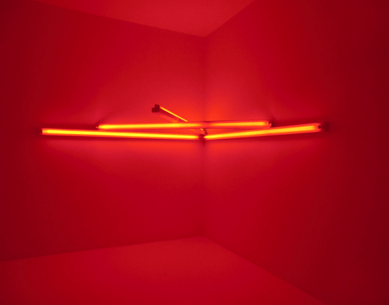 L’artista americano utilizzava per le sue opere solo tubi al neon facendo diventare scultura, quasi materia, la luce e il colore.