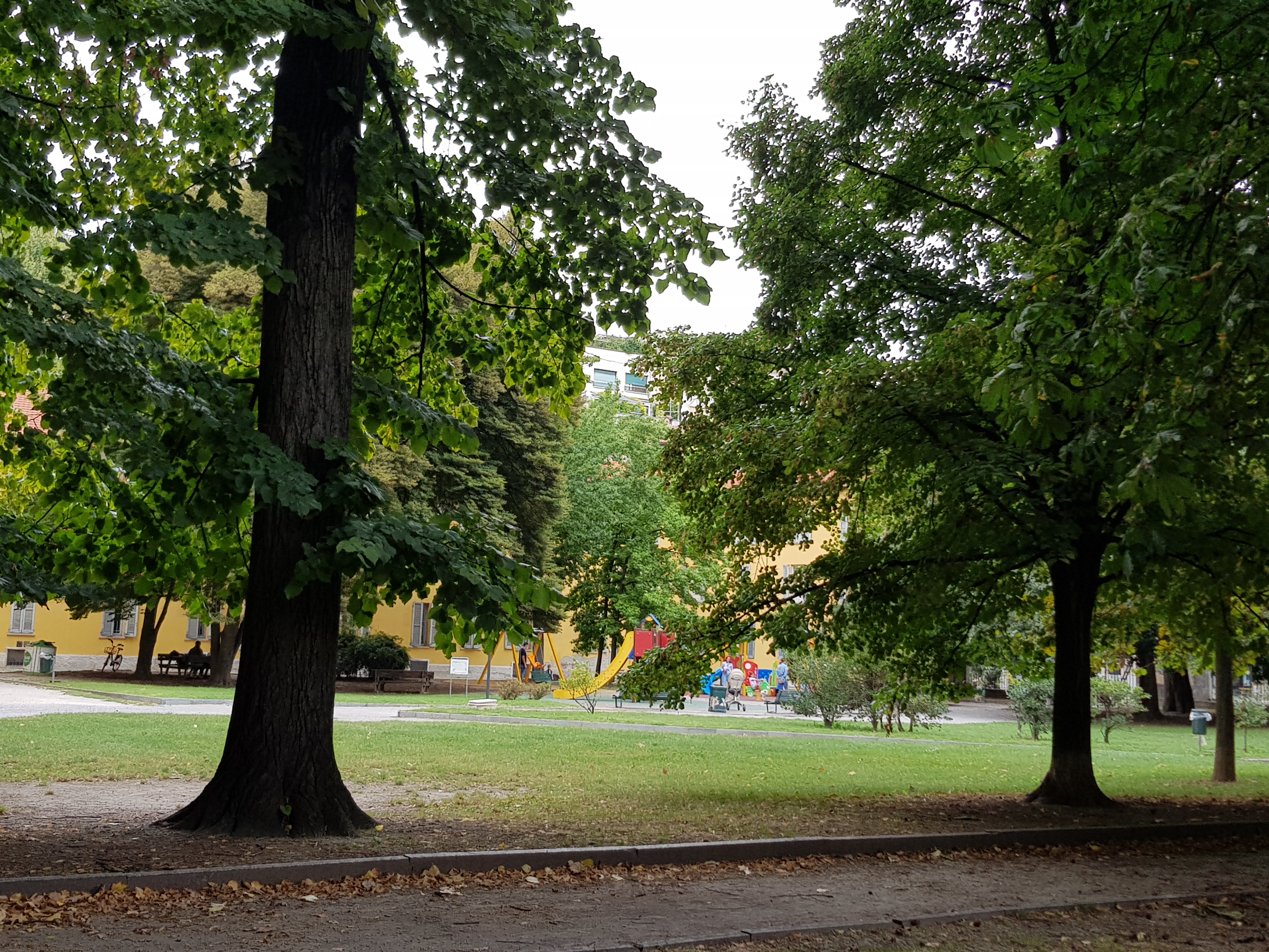 Lo scorso Natale ci siamo fermati davanti al bel presepe della chiesa. Era ambientato tra le case del quartiere e sullo sfondo un tram arrivava dal centro città.