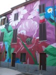La facciata di una casa del centro storico del quartiere è affrescata con un tripudio di fiori e piante che ci riporta a “orti”, origine del nome di questo territorio.