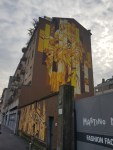Un muro di cinta unisce i due murales e fa, per così dire, da copertina al Fashion Factory Hub di Martino Midali. Moda e cultura vanno ancora una volta a braccetto.
