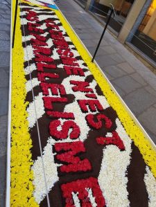 Un tappeto di petali, lungo un centinaio di metri, suddiviso in tredici quadri, ha ricoperto parte di via Spiga. Realizzato dai maestri fiorai di Noto vuole dare un segnale di ottimismo e di ripartenza alla via e alla nostra città.