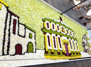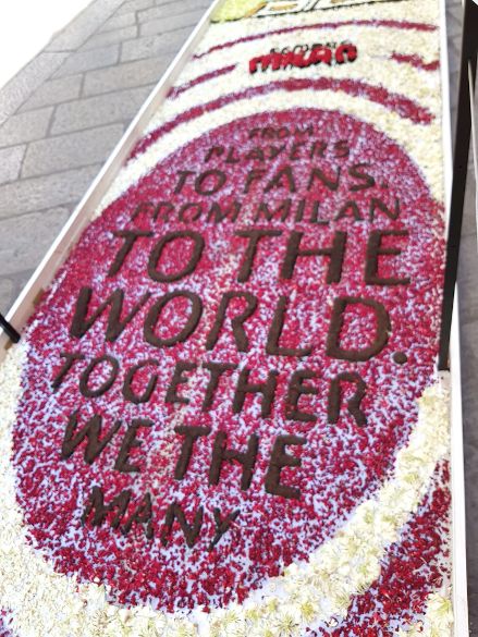 Per realizzare i “quadri” di via Spiga, sono stati utilizzati ben 200.000 fiori tra garofani, gerbere e rose. Gli argomenti sono stati vari e legati a diverse attività, dalla moda al calcio, dalla cucina stellata all’editoria…