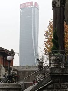 Dall’esterno della clinica, possiamo abbracciare con lo sguardo tre edifici al top nel loro genere e tempo: una villa Liberty su tre piani, ricca di decorazioni, un ospedale all’avanguardia, con tanti balconcini, che Gio Ponti realizzò con la consulenza di un celebre chirurgo per il benessere psicofisico dei ricoverati, e lo “Storto”, grattacielo di CityLife progettato da Zaha Hadid.