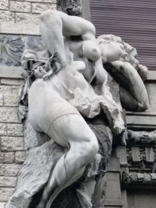 Infine, ci sono loro: le due statue che adornavano l’ingresso di Palazzo Castiglioni e che furono esiliate, perchè troppo provocanti, in un magazzino. Le “liberò”, ricollocandole su una facciata laterale di questa villa, l’architetto Sommaruga.