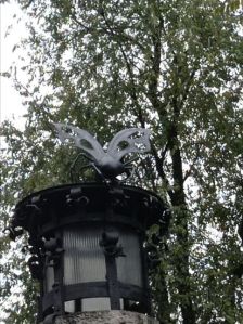 Non solo: qua e là, sopra i lampioni, sono appostati enormi insetti neri, libellule giganti, ragni dalle lunghe zampe, musi di animali con le fauci spalancate. Sono tutte opere di Lisander el ferrèe, come amava essere chiamato Mazzucotelli, che le aveva realizzate su disegno del Sommaruga.