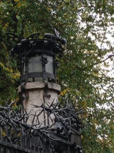 Restiamo, però, stupiti nel vedere come le cancellate abbiano grosse spine di ferro battuto e intricate volute a protezione, che creano un’atmosfera un po’ sinistra, quasi da Famiglia Addams.