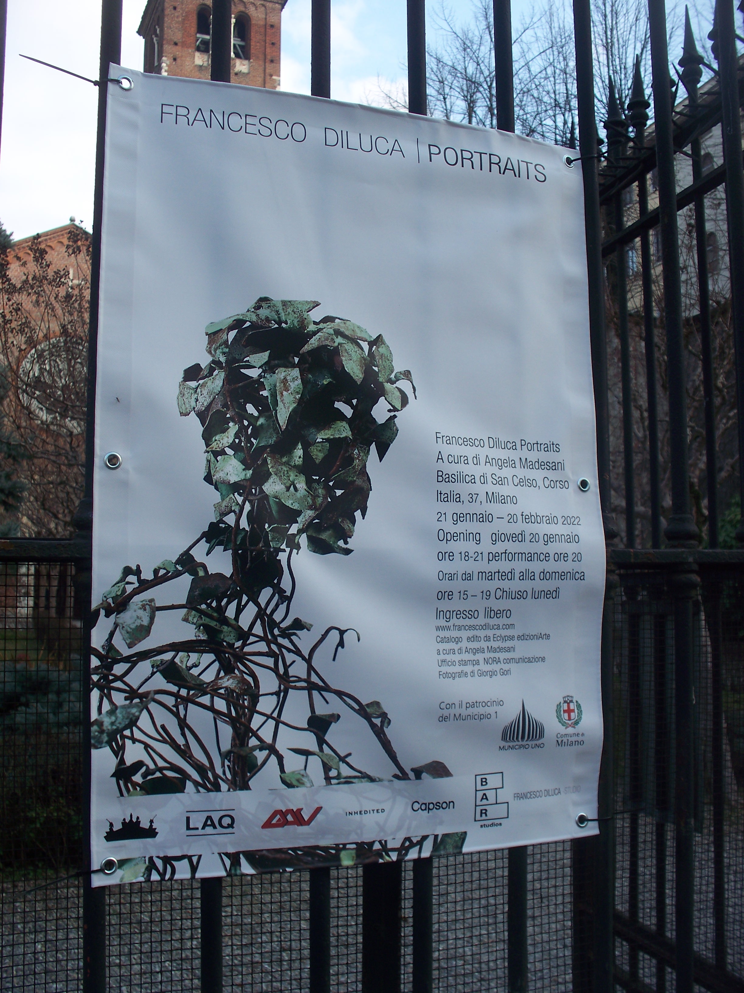 È stata la bella mostra “Portraits” di Francesco Diluca, a farci rivisitare la chiesa di San Celso, in corso Italia. Nell’austero spazio di questa basilica, infatti, erano “presenti” una trentina di figure realizzate in filo di ferro, rame e oro zecchino.