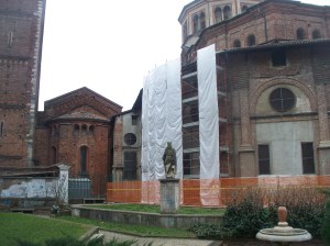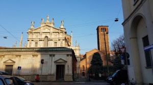 Oggi, invece, facciamo quattropassi intorno a questo santuario per cercare di leggere il suo contesto e percepirne il passato. Ai tempi di Sant’Ambrogio, questa zona, ricca di acque, era conosciuta come “ad tres moros”, cioè “ai tre gelsi”, come sono chiamate nel nostro dialetto queste piante. Tutto scomparso? Forse cambiato! Se andiamo sul retro delle due chiese, in via Vigoni, troviamo un bel giardinetto pubblico dal quale si vedono le absidi, al momento in ristrutturazione.
