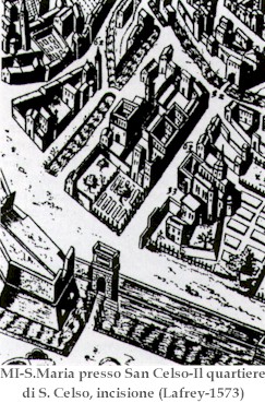 La folla dei pellegrini era infatti tale che Ludovico il Moro fece addirittura riaprire una porta cittadina (l’ex Pusterla di Sant’Eufemia che si trovava nelle mura ai tempi del Barbarossa) per permettere un passaggio più agevole dei fedeli diretti al santuario. In questa antica incisione vediamo le due chiese e la porta, purtroppo abbattuta nel 1827. Ne rimane solo il nome, Porta Ludovica, in onore del Moro.