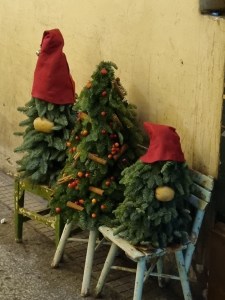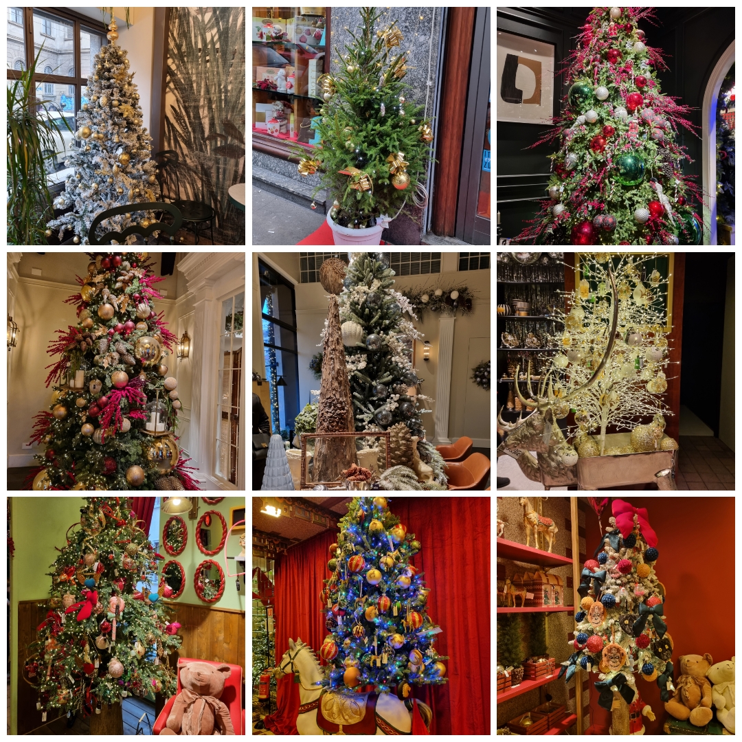 Alberi illuminano anche i negozi e i locali per attirare il pubblico e condurlo nel lungo viaggio verso il Natale.