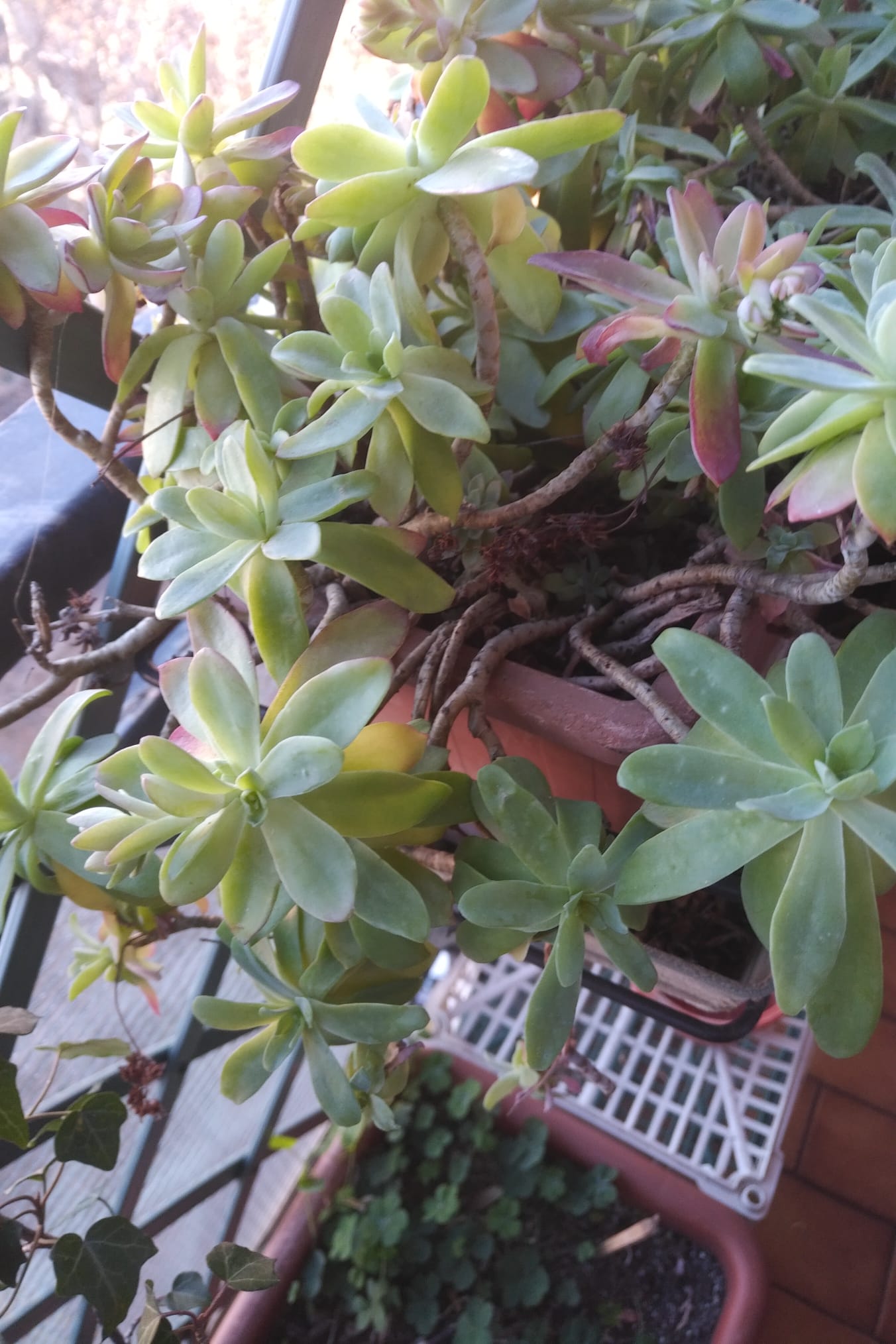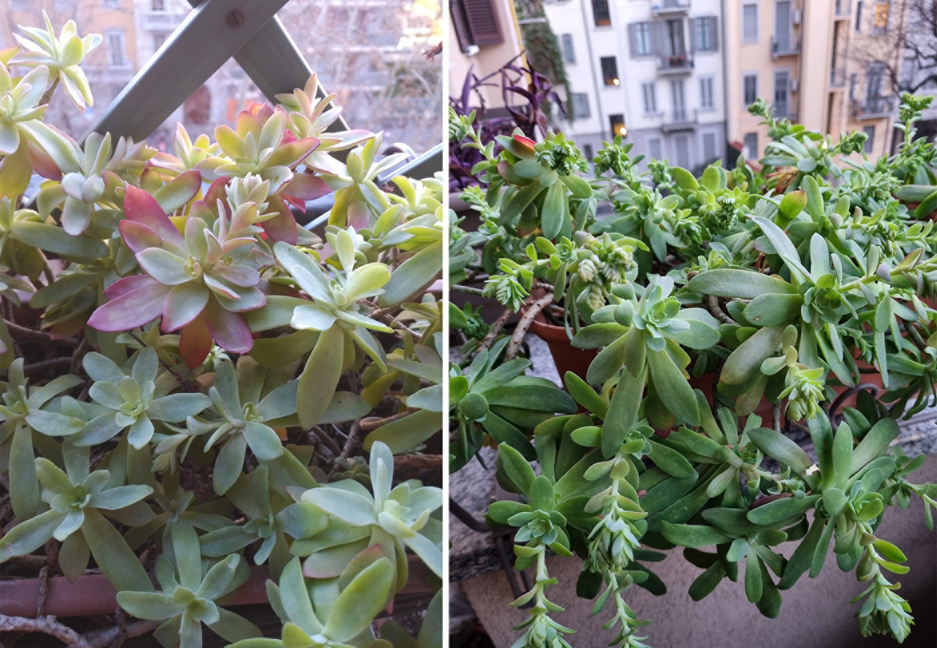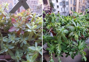 Le foglie sono carnose e formano piccole rose verdi. Durante la stagione fredda i bordi si colorano di rosso. Anche se siamo in pieno inverno, però le nostre piantine si preparano a fiorire con accenni di piccoli grappoli.