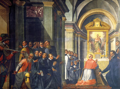 E qui la storia si tinge foscamente di giallo. Un Umiliato, tale Farina, si introdusse, portando con sè un archibugio, nella cappella dell’Arcivescovado, di fianco al Duomo.