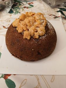 L’abbiamo assaggiata con alcuni amici accompagnata da una pallina di gelato alla crema e… ci è piaciuta subito! E’ una torta ricca di sapori sapienti e particolari che ne fanno un vero dolce natalizio.