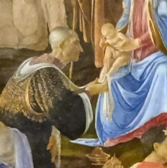 Sembra chiederci: “Ho dipinto come Magi Cosimo il Vecchio de’ Medici ed i suoi figli Piero il Gottoso e Giovanni, tutti già defunti. Cosimo, in particolare, col viso sofferente si inchina a Gesù, accostandosi con umiltà al suo piedino. La Rivelazione avrà dunque toccato anche loro?”
