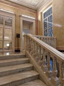 Un importante scalone in marmo conduce, dopo un androne con porticato, al piano nobile dove viveva e lavorava il pittore.