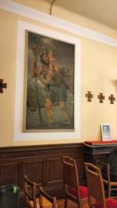 Avvolta in un caldo color crema con tocchi di bianco e qualche elemento in legno, è molto accogliente; in una piccola nicchia c’è la statua di Santa Maria del Cammino e su una parete un dipinto con San Cristoforo, patrono della gente che viaggia, che porta sulle spalle Gesù Bambino.